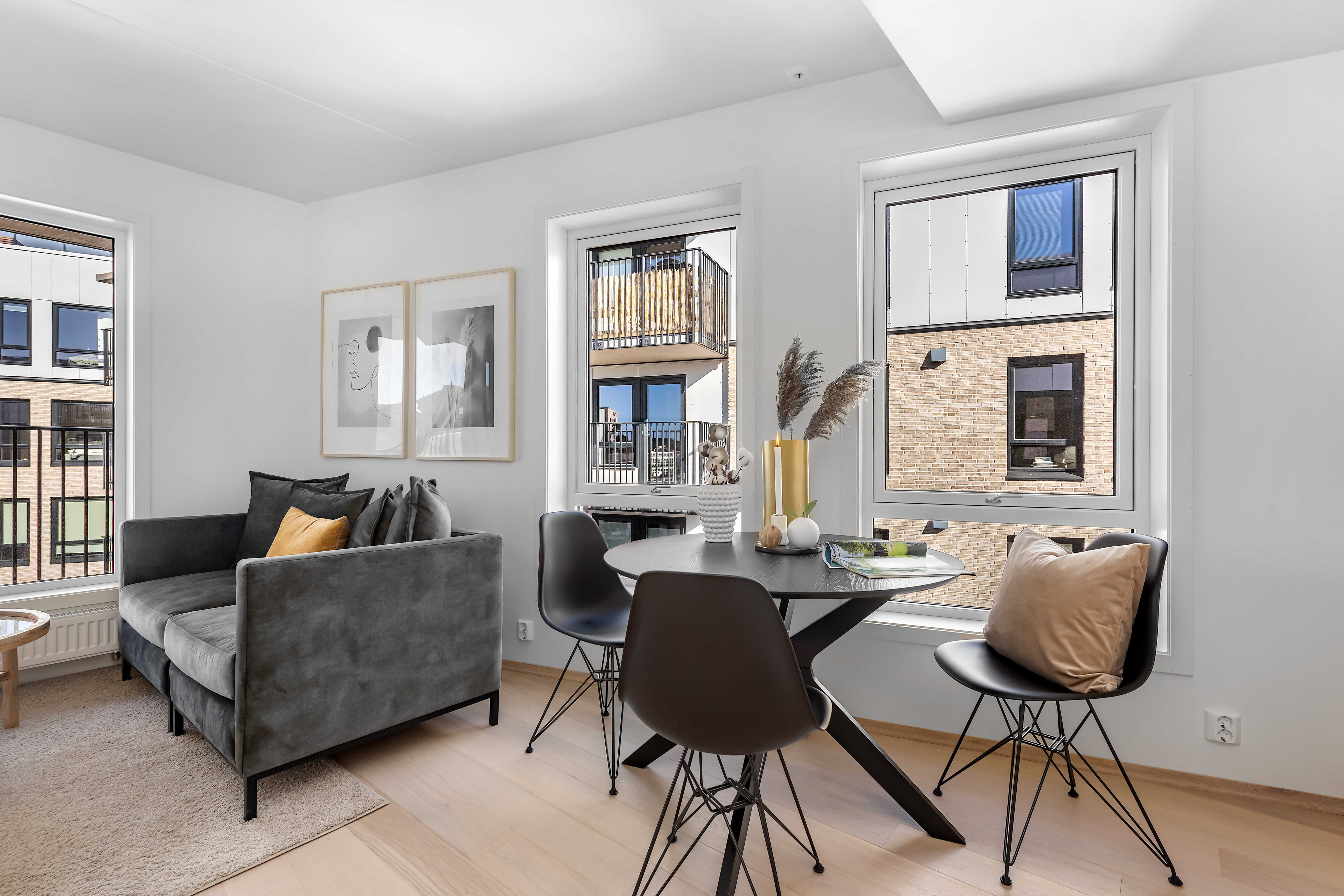 Alle illustrasjoner er utarbeidet basert på tegninger av fremtidige bygg. Illustrerte fasader vil kunne avvike fra ferdige bygg. Elementer og materialer i illustrasjonene kan avvike fra standardleveranse. Øvrige bygg, beplantning, vegetasjon og fellesarealer er ikke endelig prosjektert.
