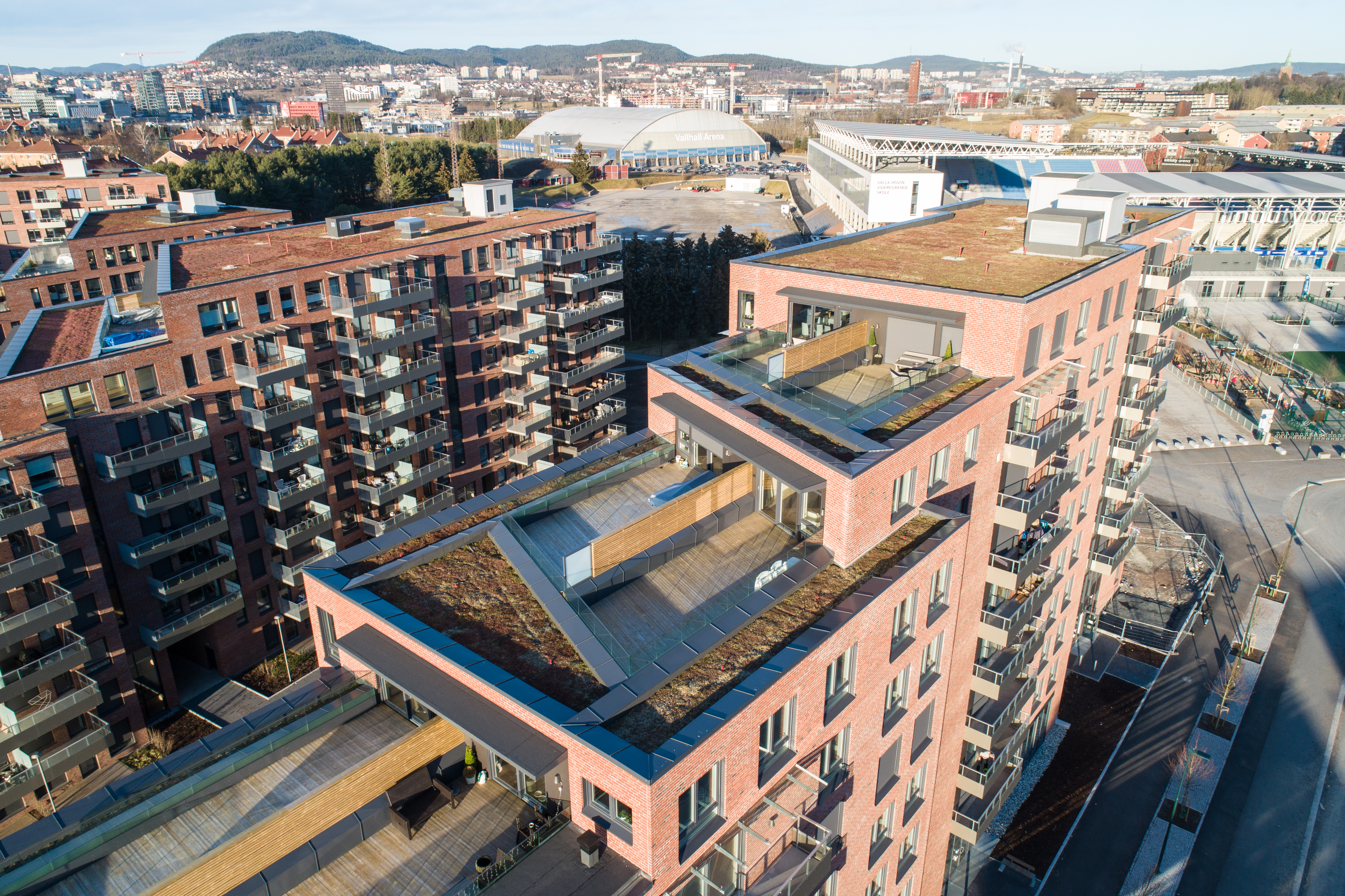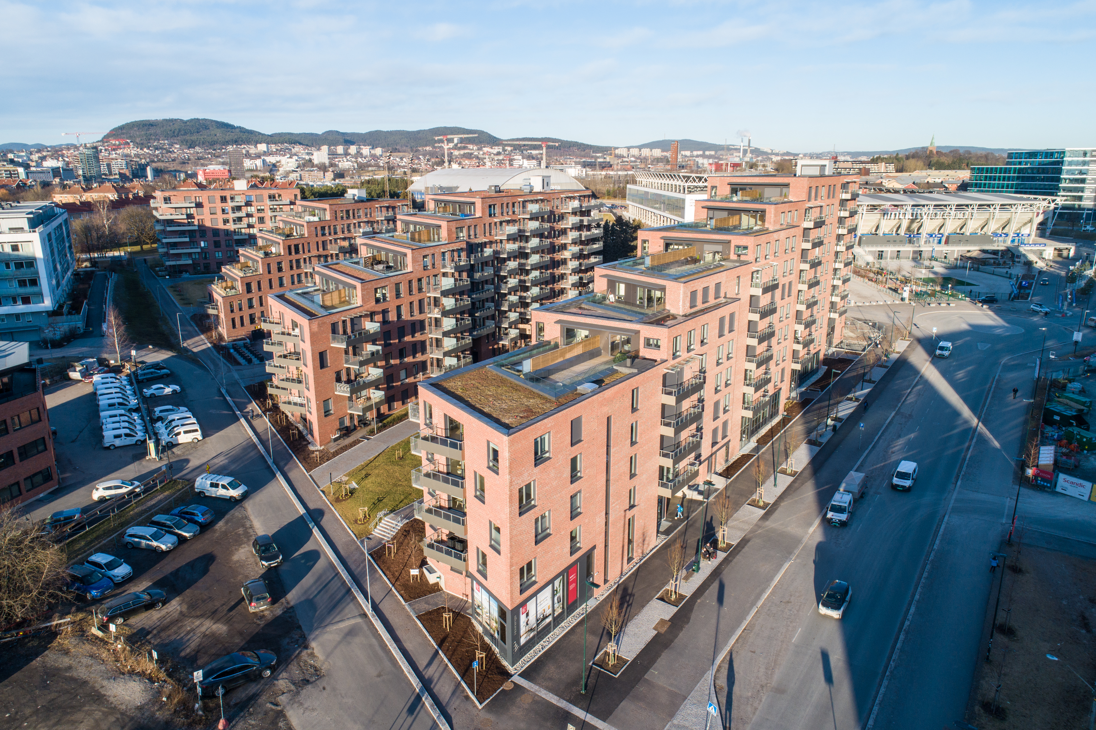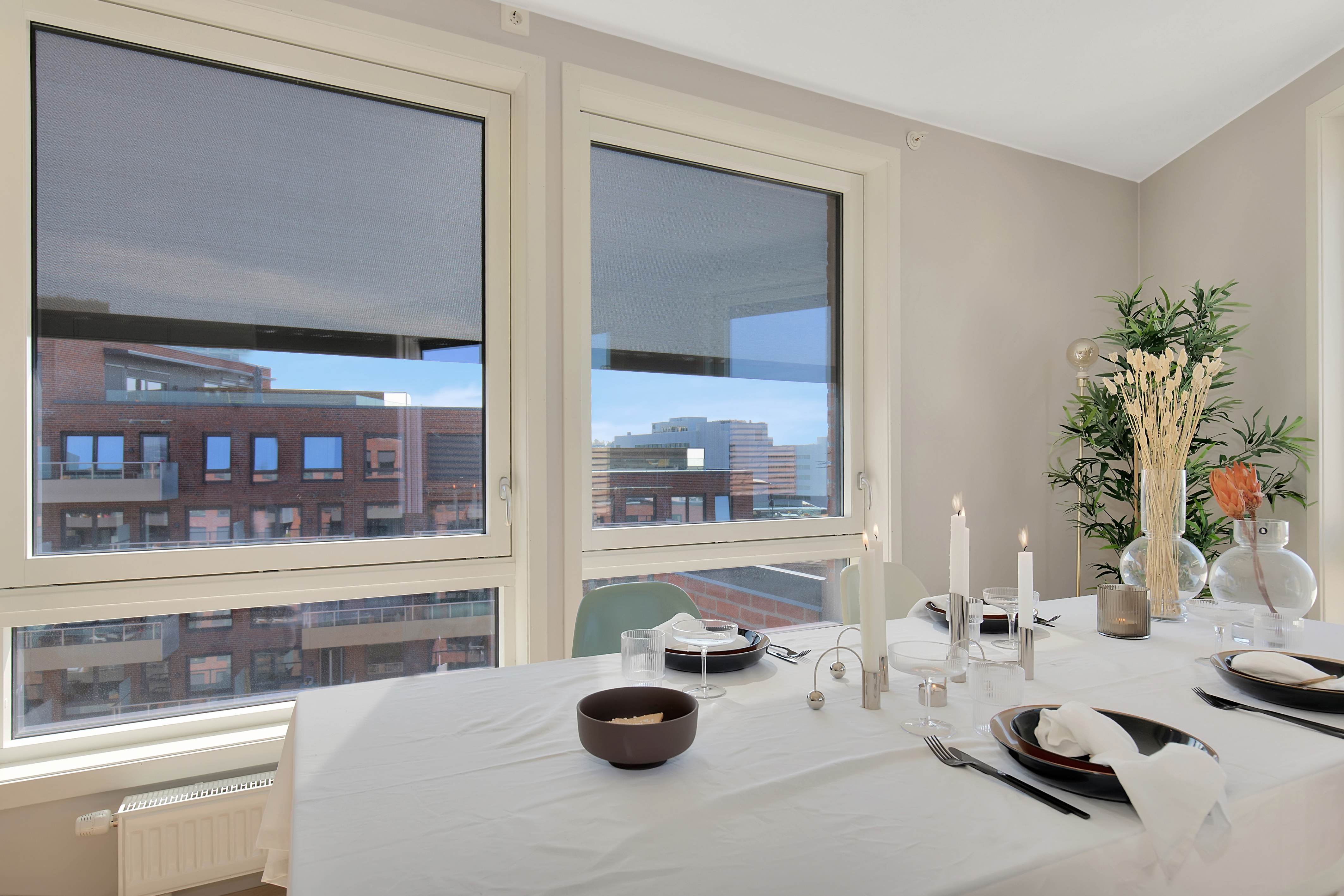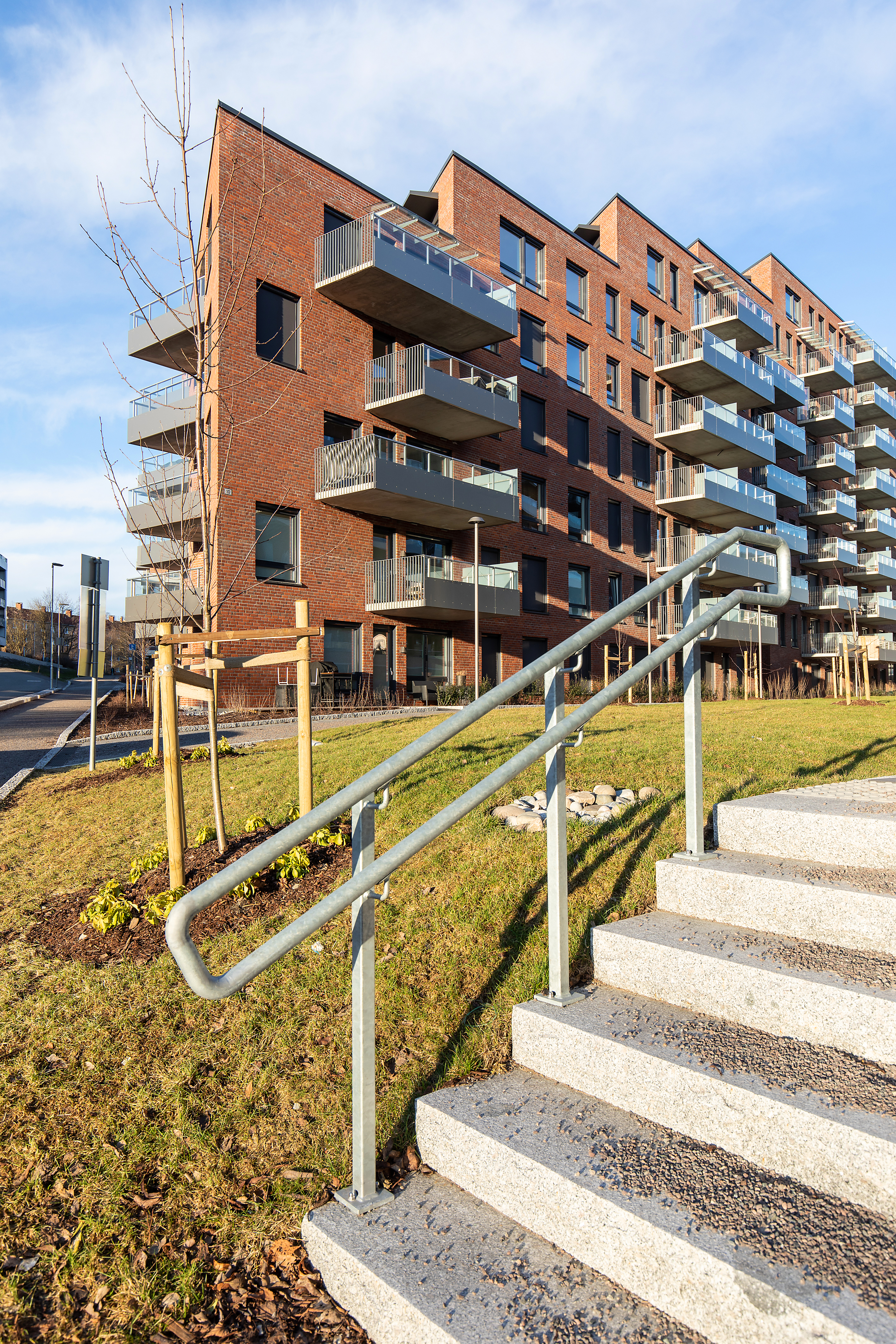 Alle illustrasjoner er utarbeidet basert på tegninger av fremtidige bygg. Illustrerte fasader vil kunne avvike fra ferdige bygg. Elementer og materialer i illustrasjonene kan avvike fra standardleveranse. Øvrige bygg, beplantning, vegetasjon og fellesarealer er ikke endelig prosjektert.