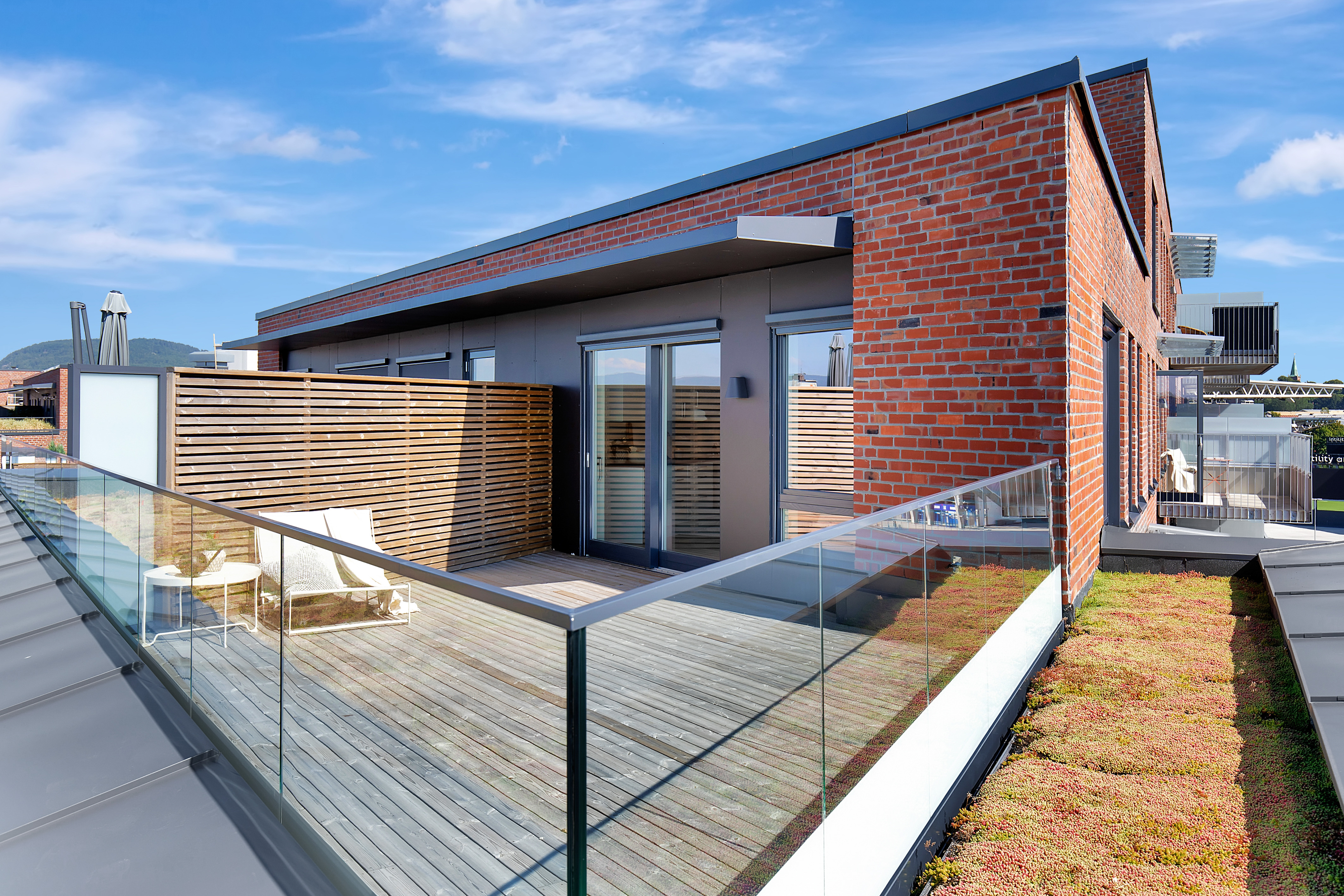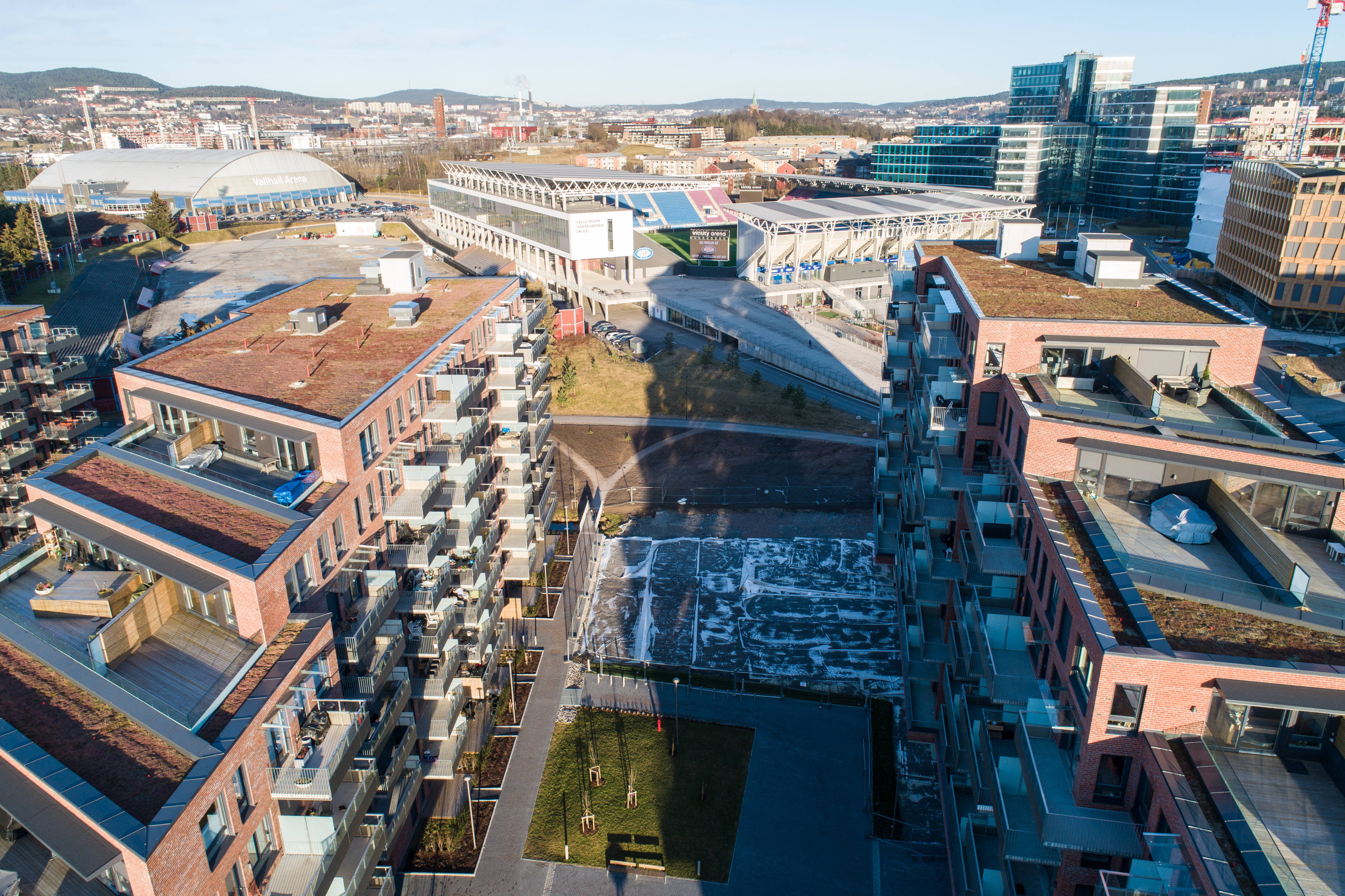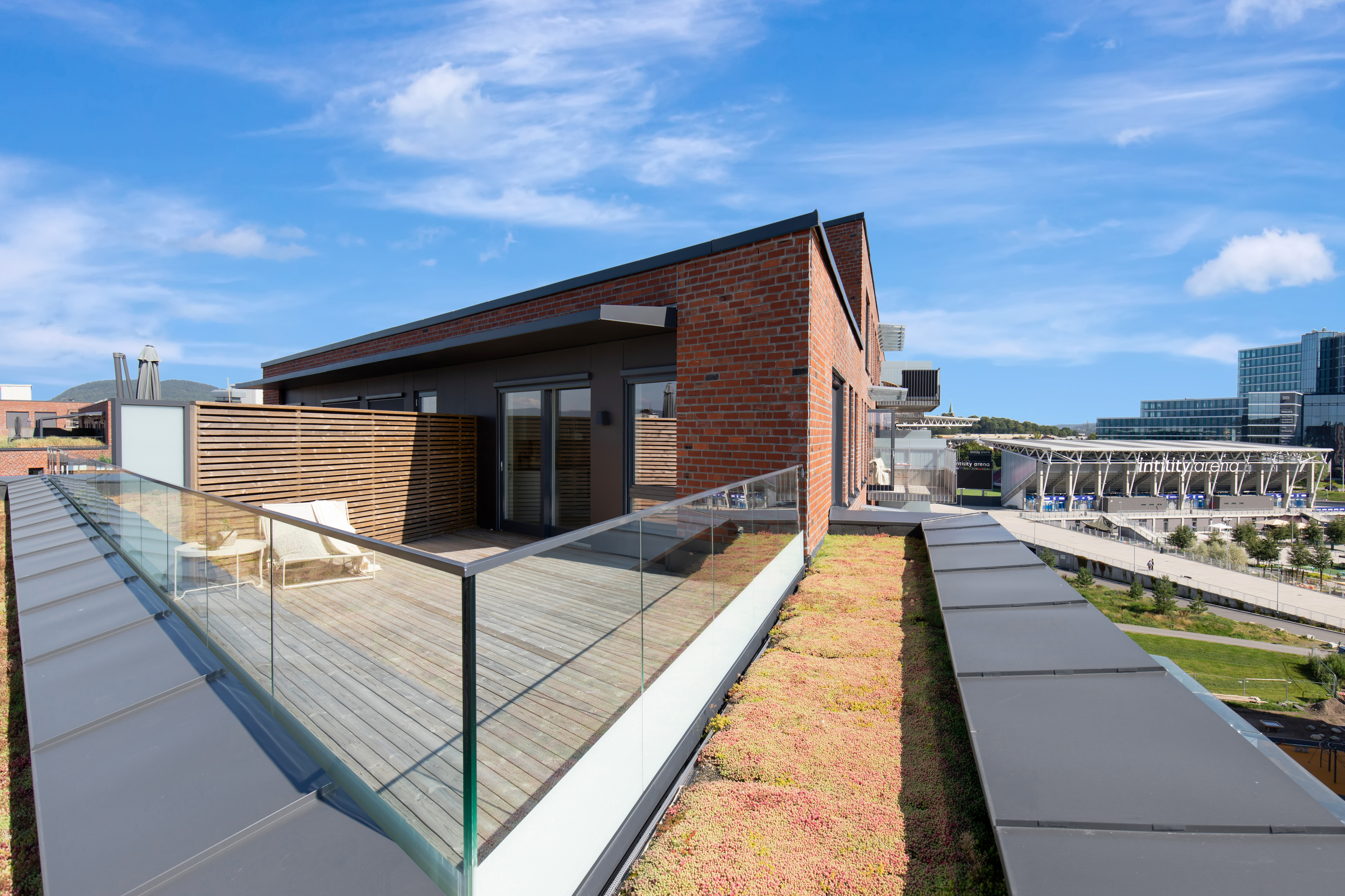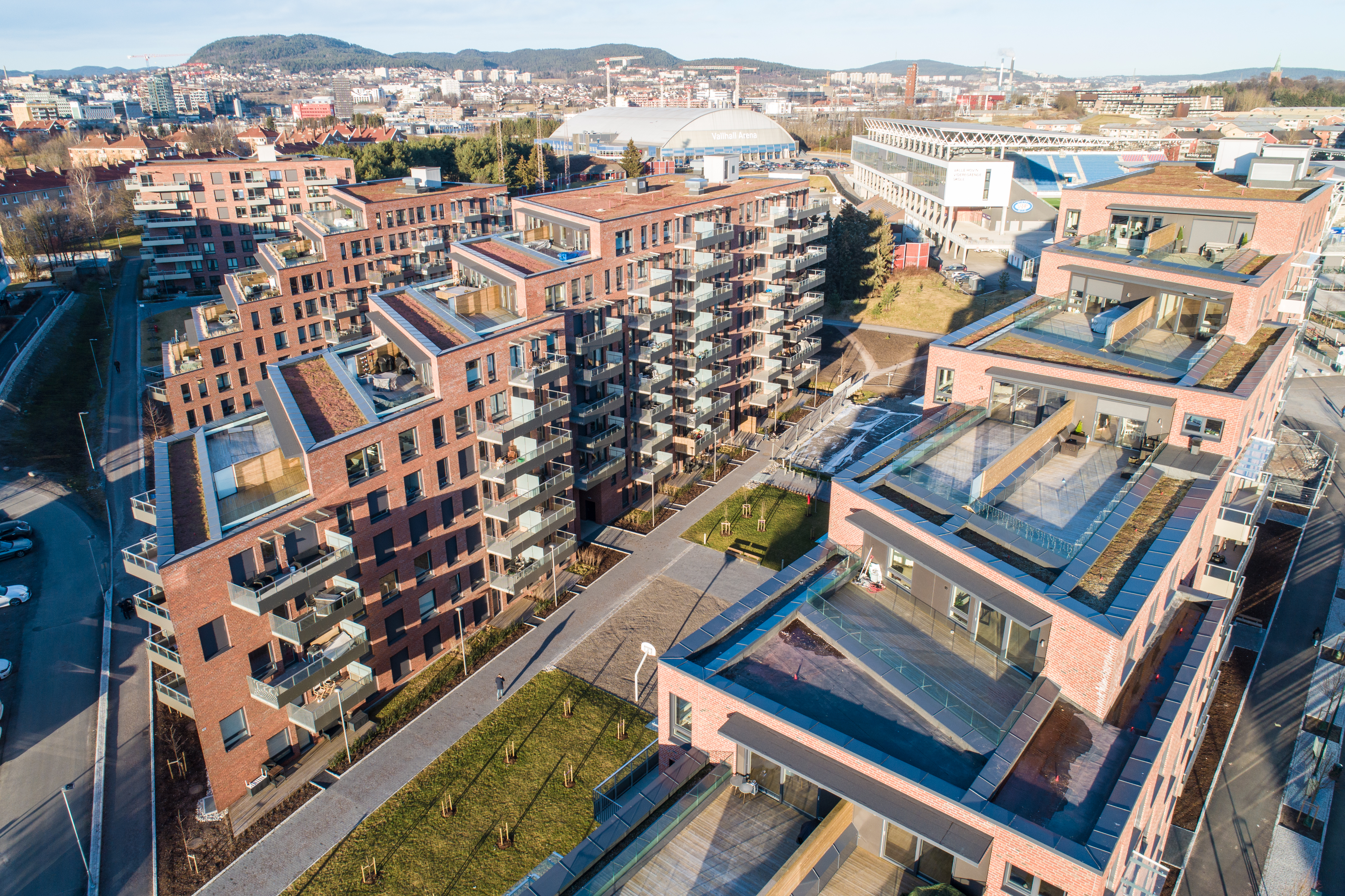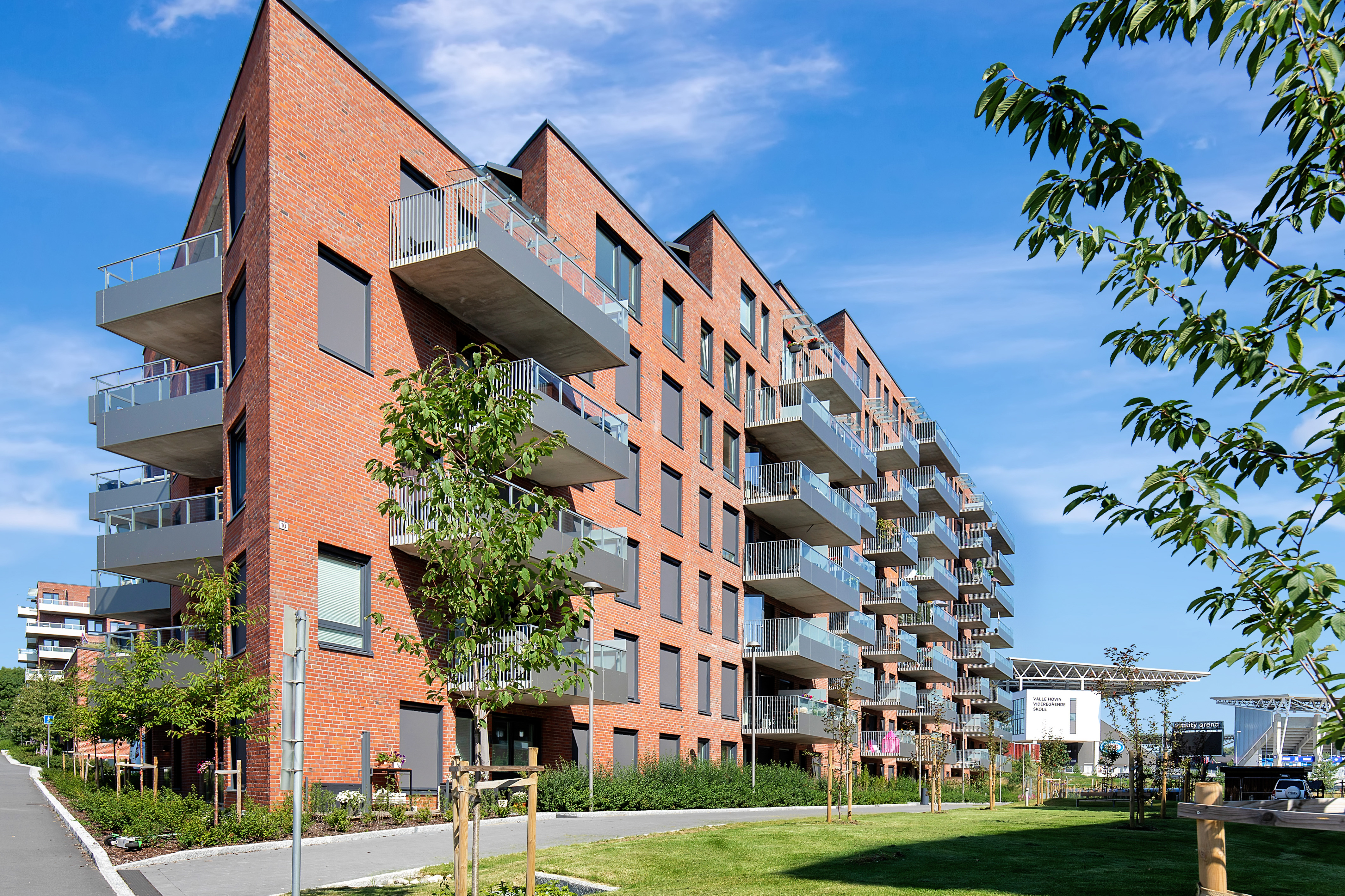 Alle illustrasjoner er utarbeidet basert på tegninger av fremtidige bygg. Illustrerte fasader vil kunne avvike fra ferdige bygg. Elementer og materialer i illustrasjonene kan avvike fra standardleveranse. Øvrige bygg, beplantning, vegetasjon og fellesarealer er ikke endelig prosjektert.