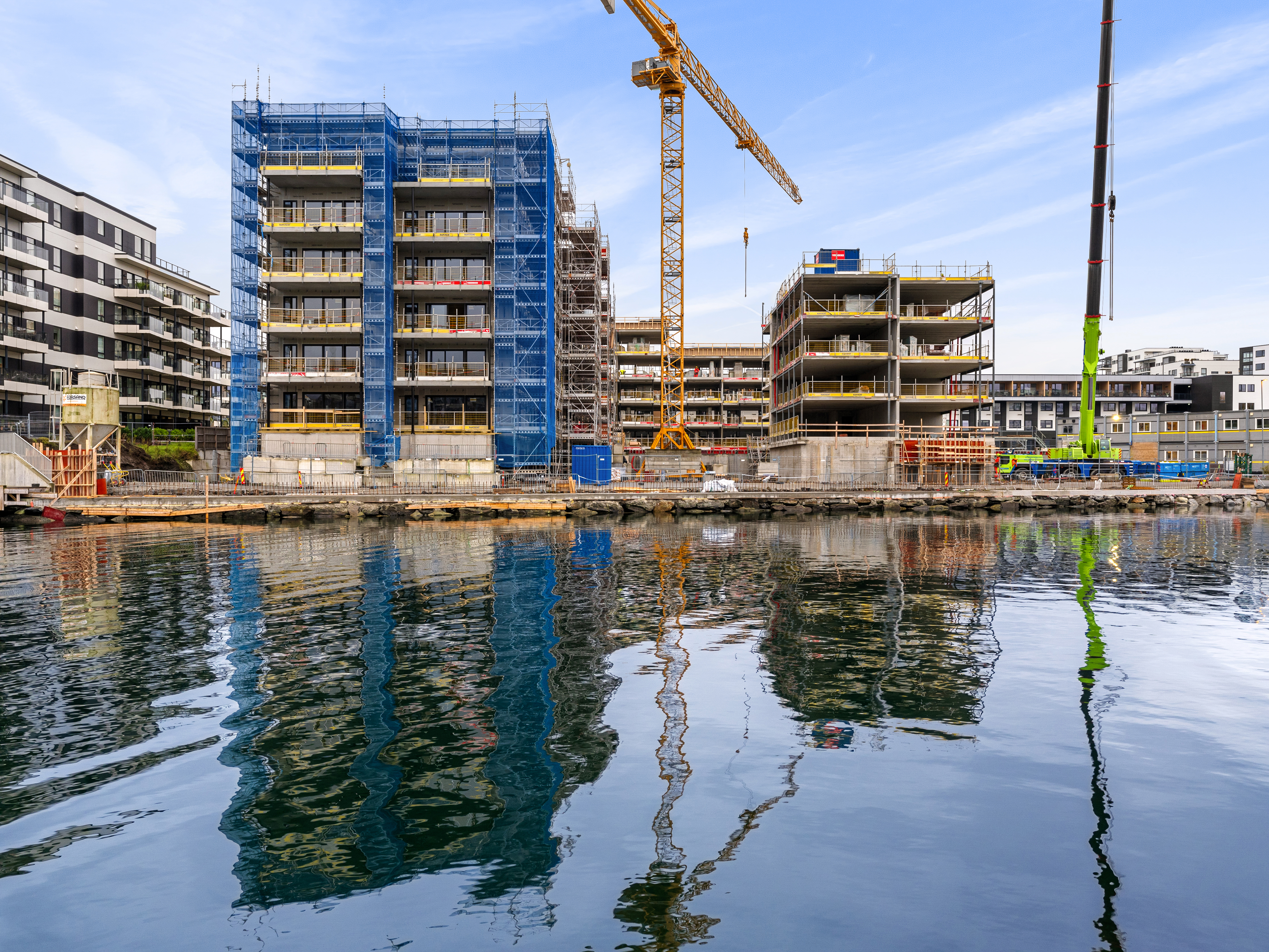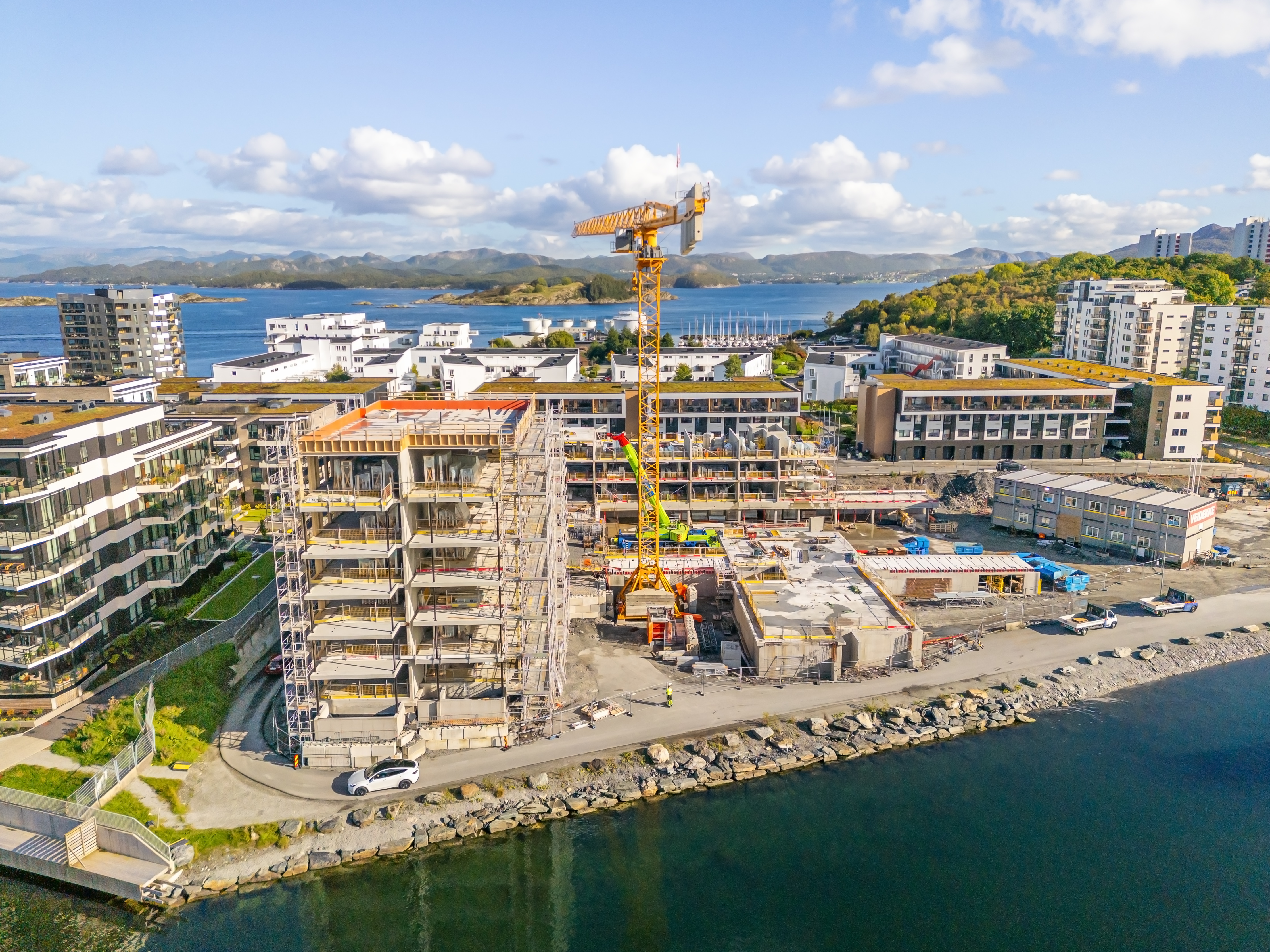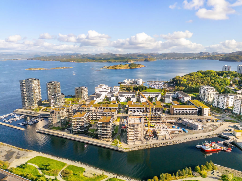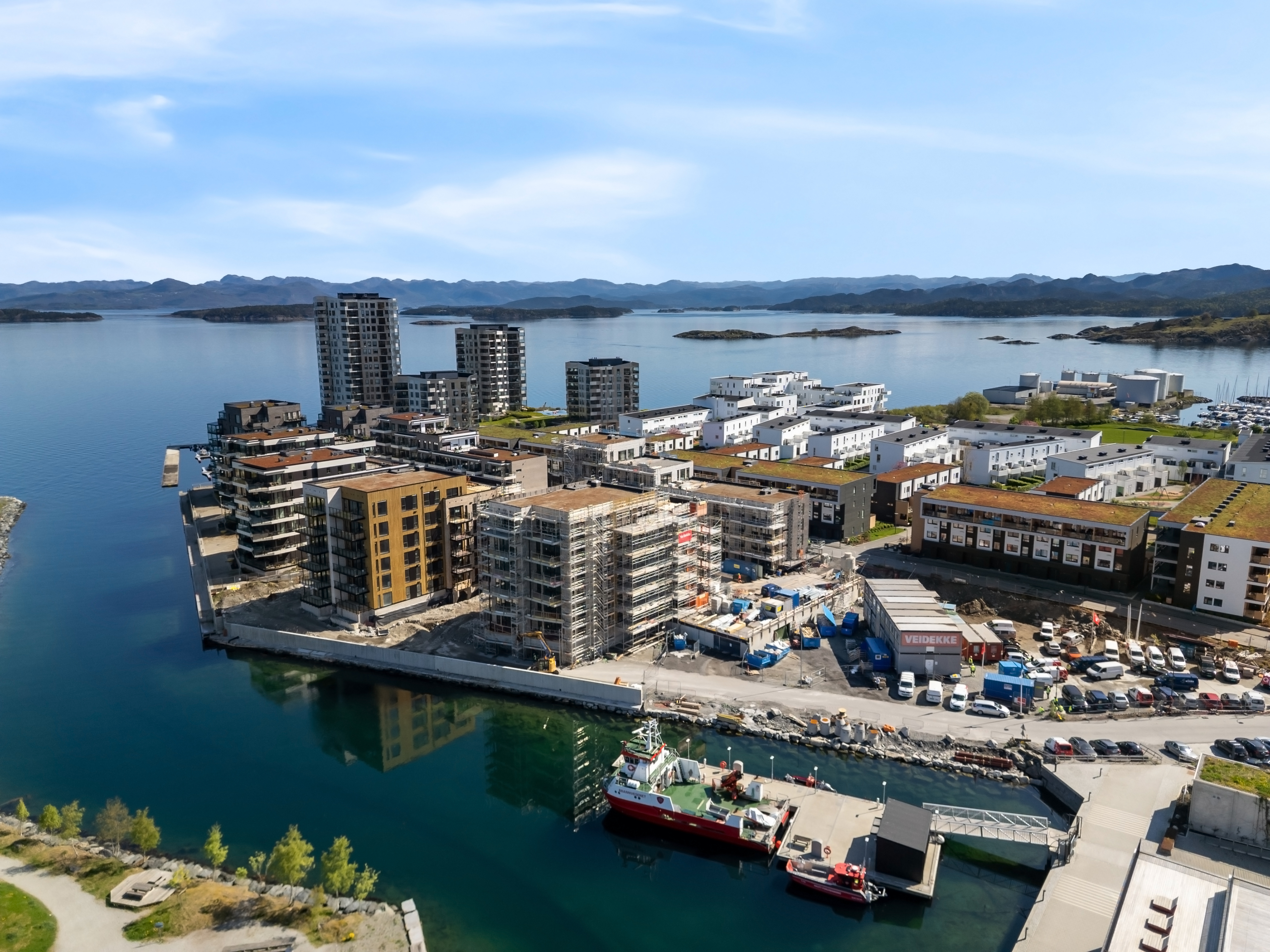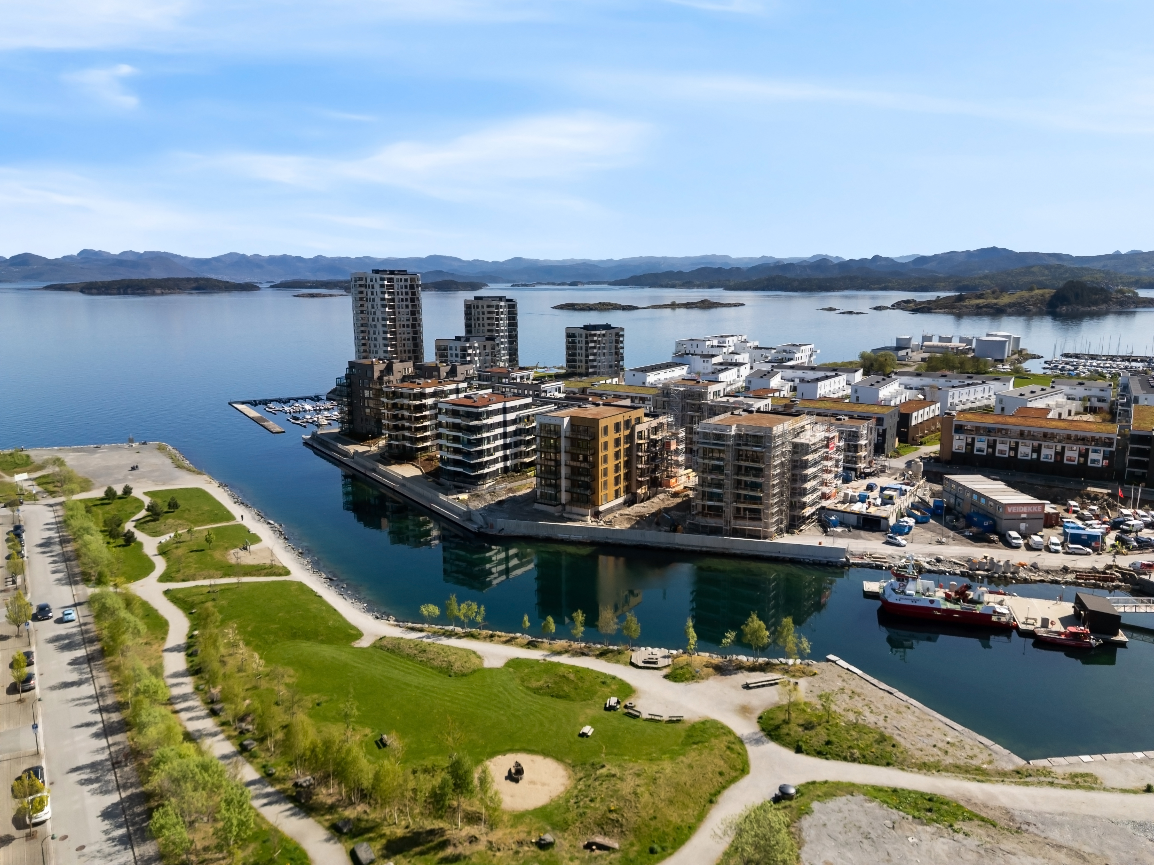 Ytterst mot fjorden på Lervig Brygge bygger vi nå 91 nye leiligheter med spennende arkitektur, gode sol- og utsiktsforhold. Alle leilighetene får store vindusflater, lys eikeparkett, generøs takhøyde, hvite, glatte fronter på kjøkken og flislagte bad med gulvvarme.