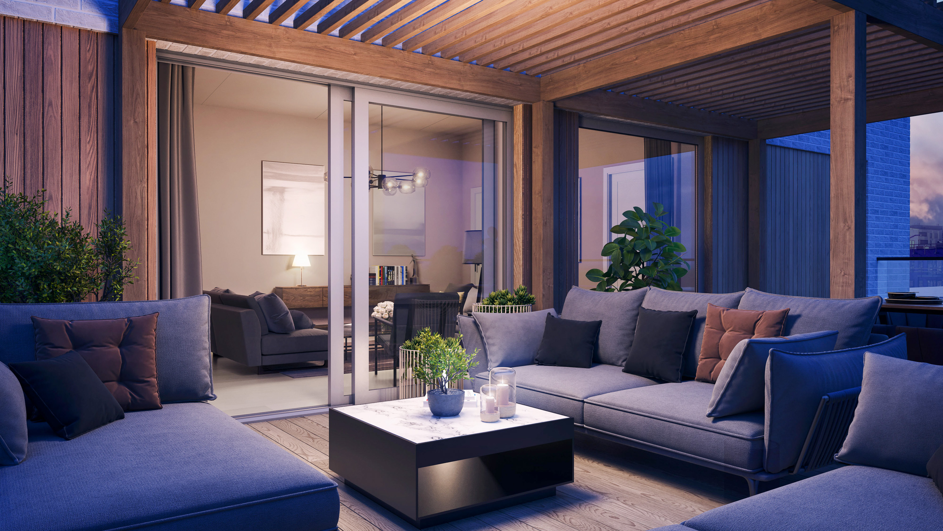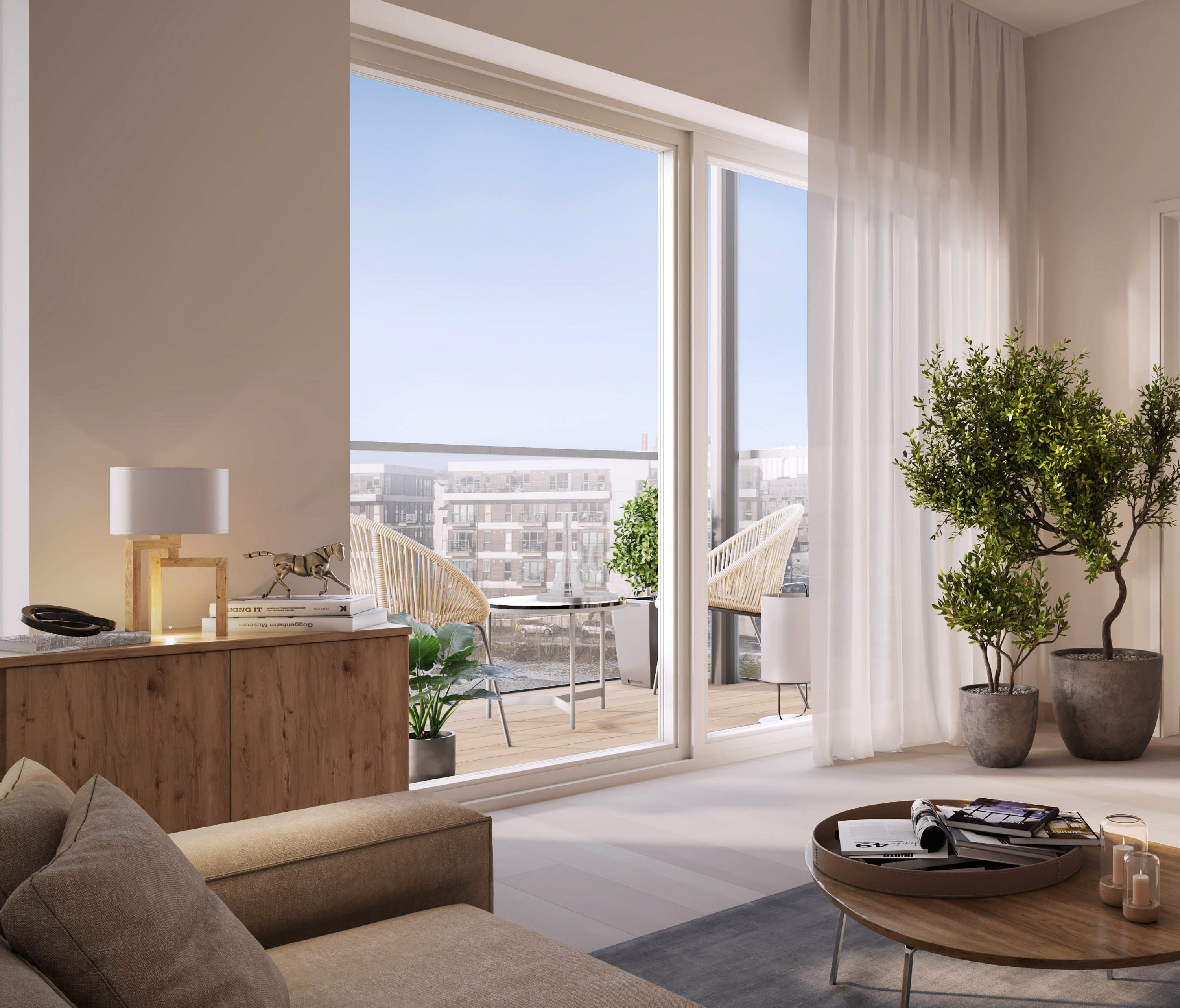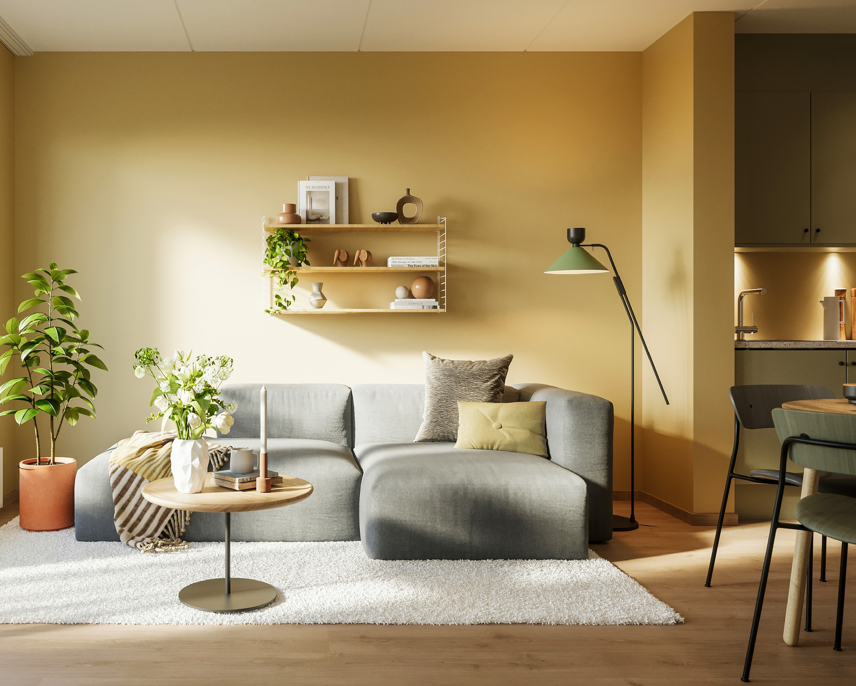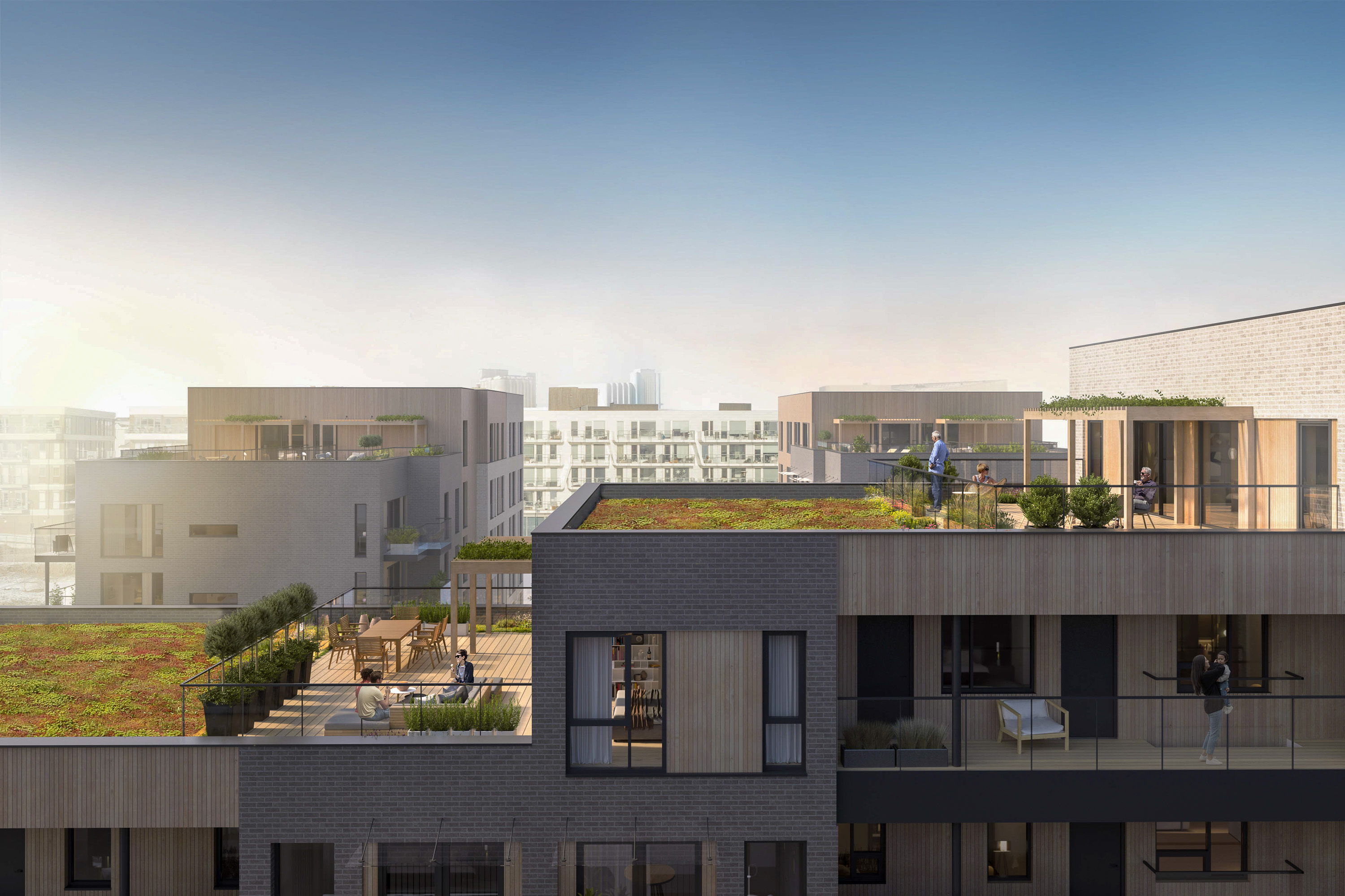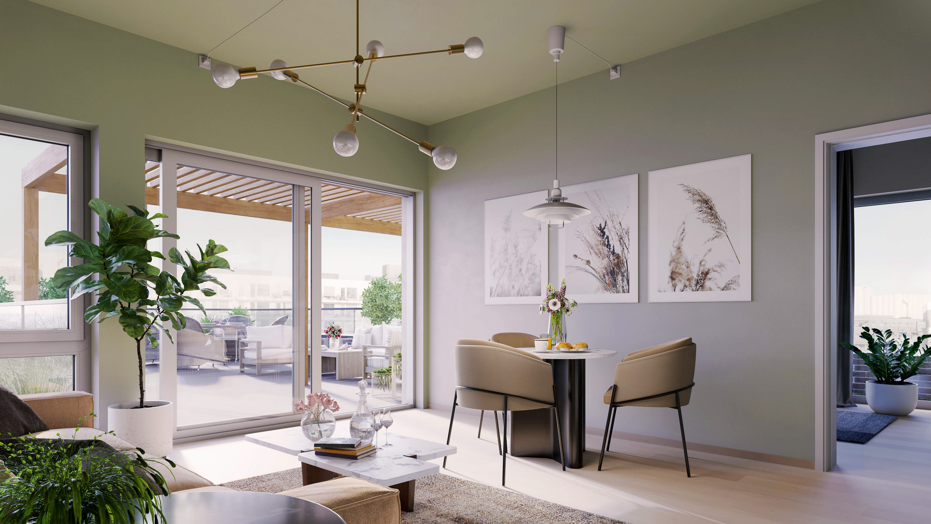 Alle illustrasjoner er utarbeidet basert på tegninger av fremtidige bygg. Illustrerte fasader vil kunne avvike fra ferdige bygg. Elementer og materialer i illustrasjonene kan avvike fra standardleveranse. Øvrige bygg, beplantning, vegetasjon og fellesarealer er ikke endelig prosjektert.