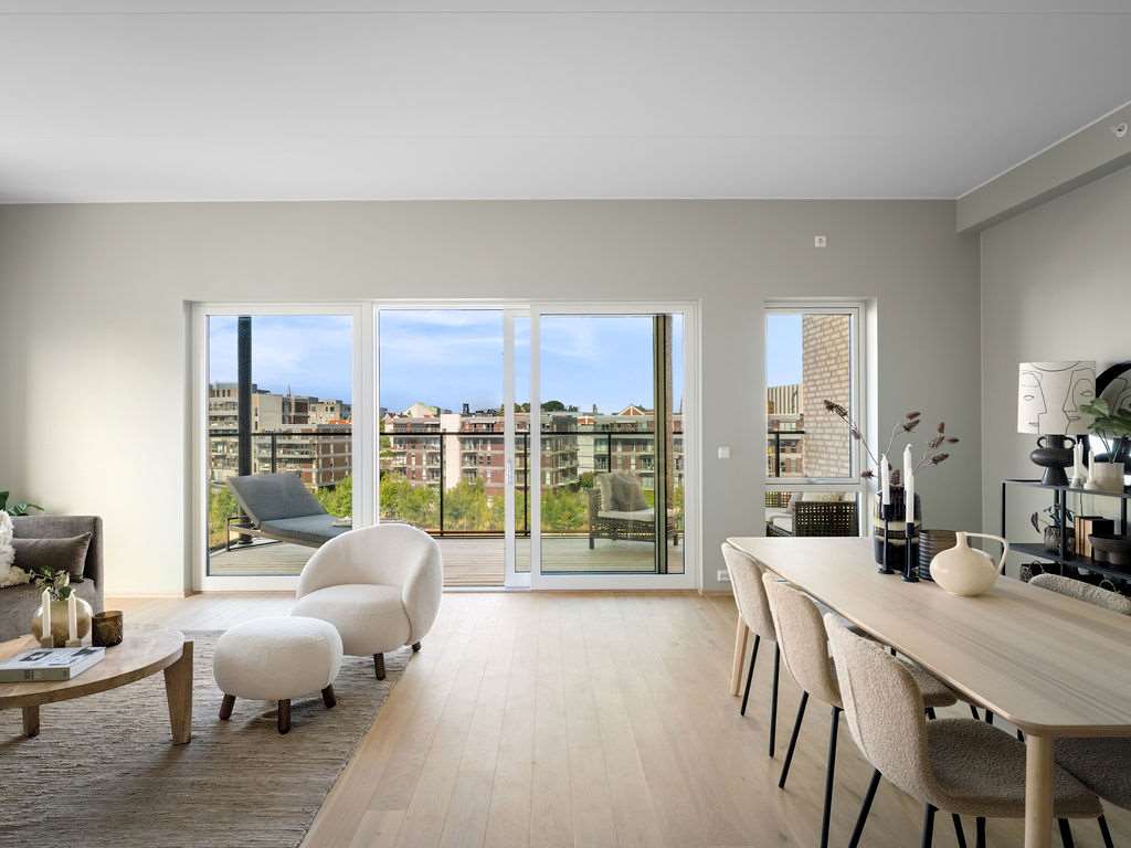 Alle illustrasjoner er utarbeidet basert på tegninger av fremtidige bygg. Illustrerte fasader vil kunne avvike fra ferdige bygg. Elementer og materialer i illustrasjonene kan avvike fra standardleveranse. Øvrige bygg, beplantning, vegetasjon og fellesarealer er ikke endelig prosjektert.