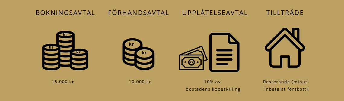 4️⃣ Upplåtelseavtal – Tecknas ca 3–6 månader innan inflyttning. Då betalar du 10% av bostadens pris, minus tidigare inbetalat förskott.