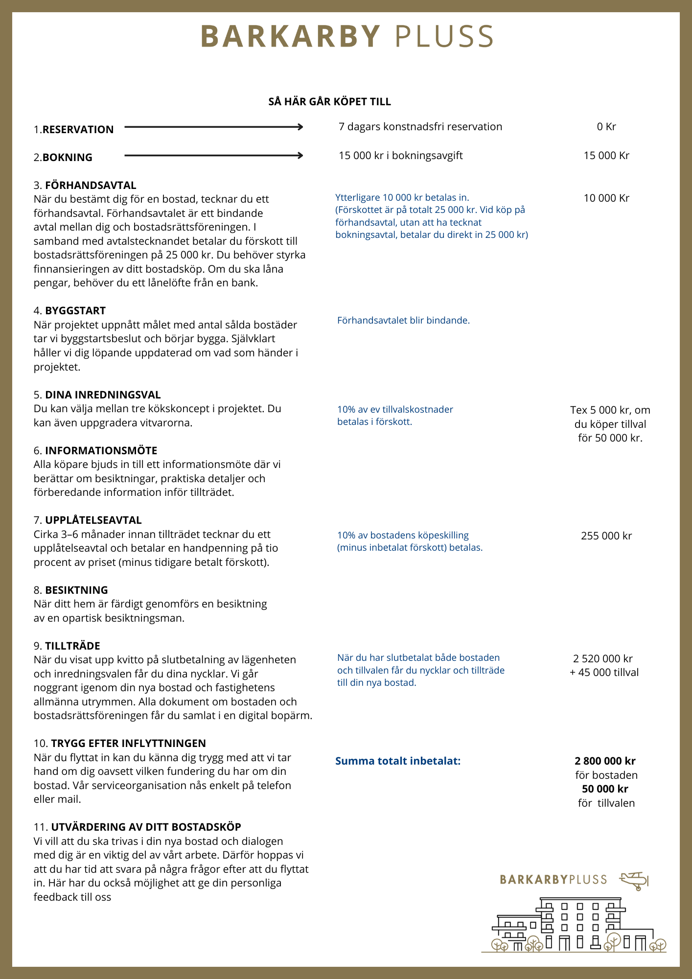 2️⃣ Förhandsavtal – Köpet blir bindande först här. Du betalar ytterligare 10 000 kr.