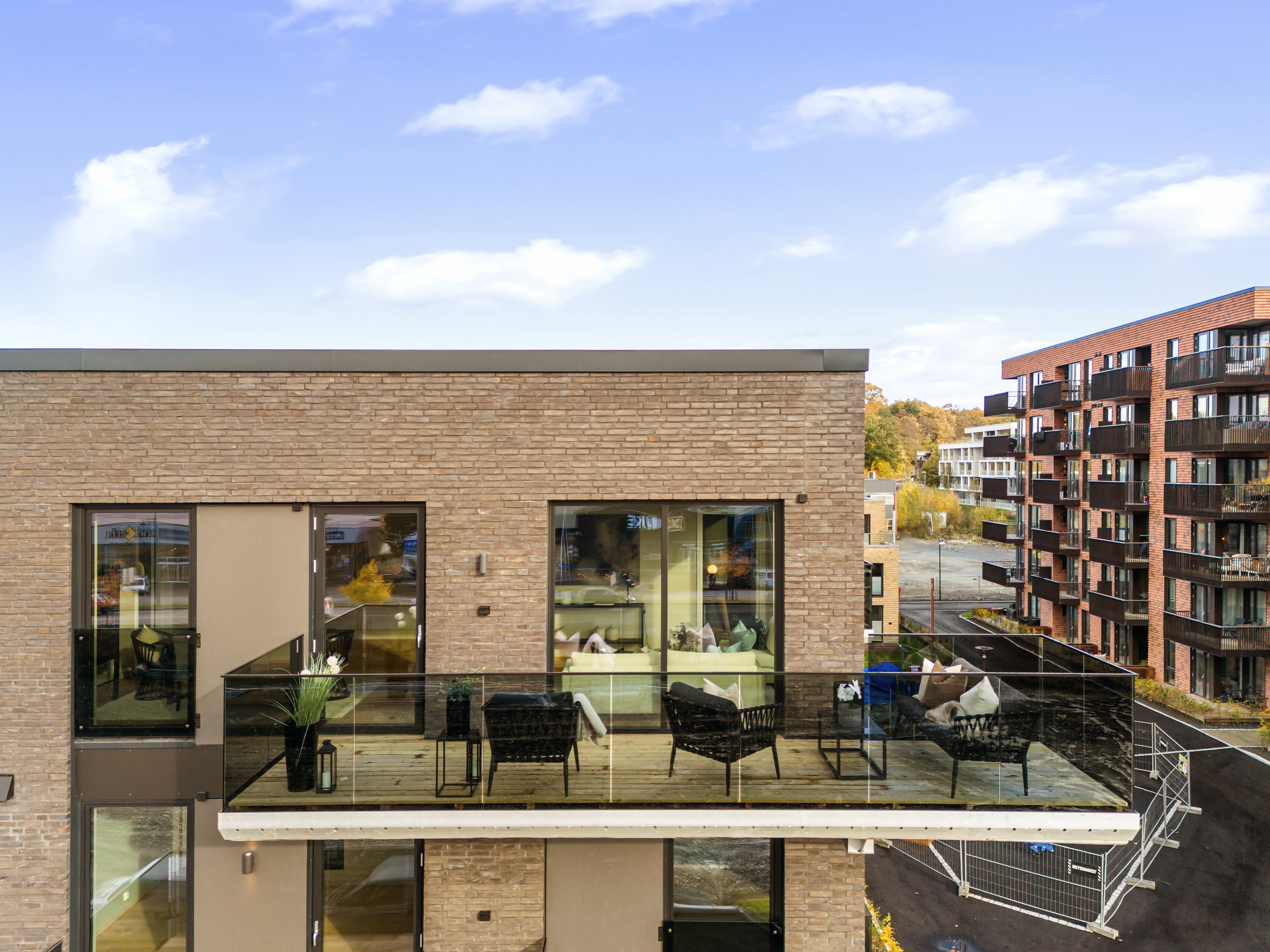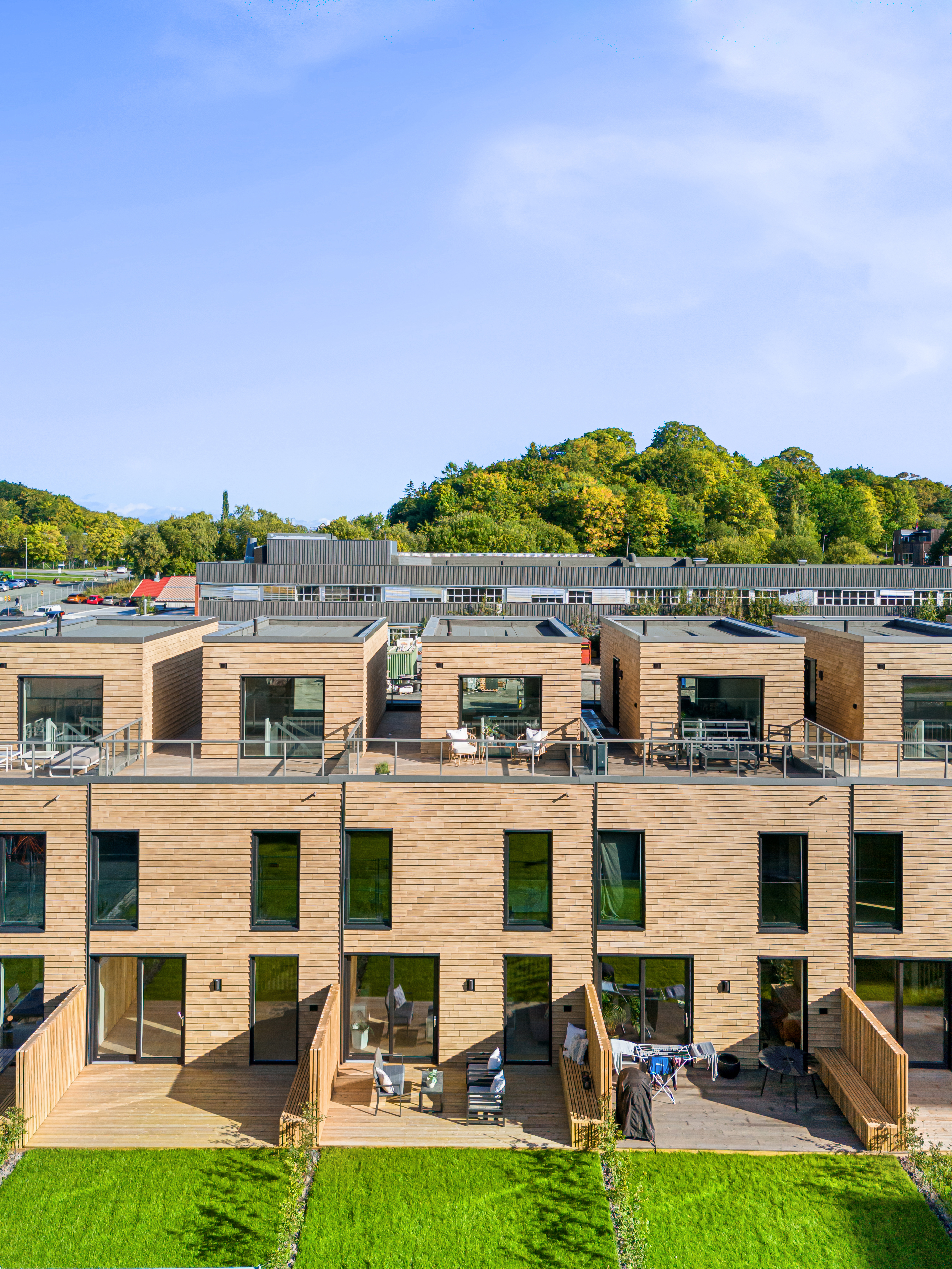 De nye rekkehusene og leilighetene står ferdigstilte, og vi har kun en usolgt og innflyttingsklar leilighet igjen: klikk her for enhetsannonse.