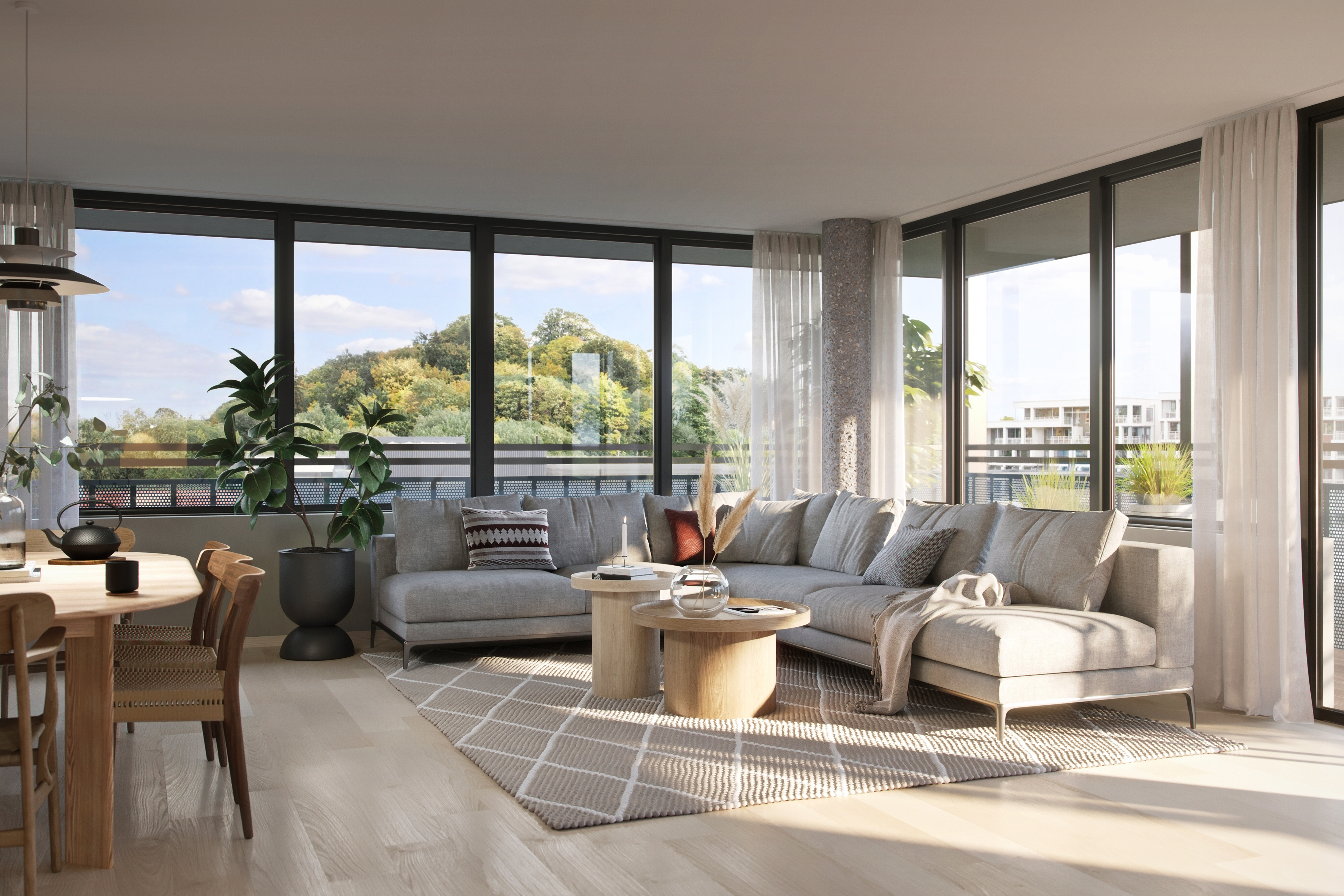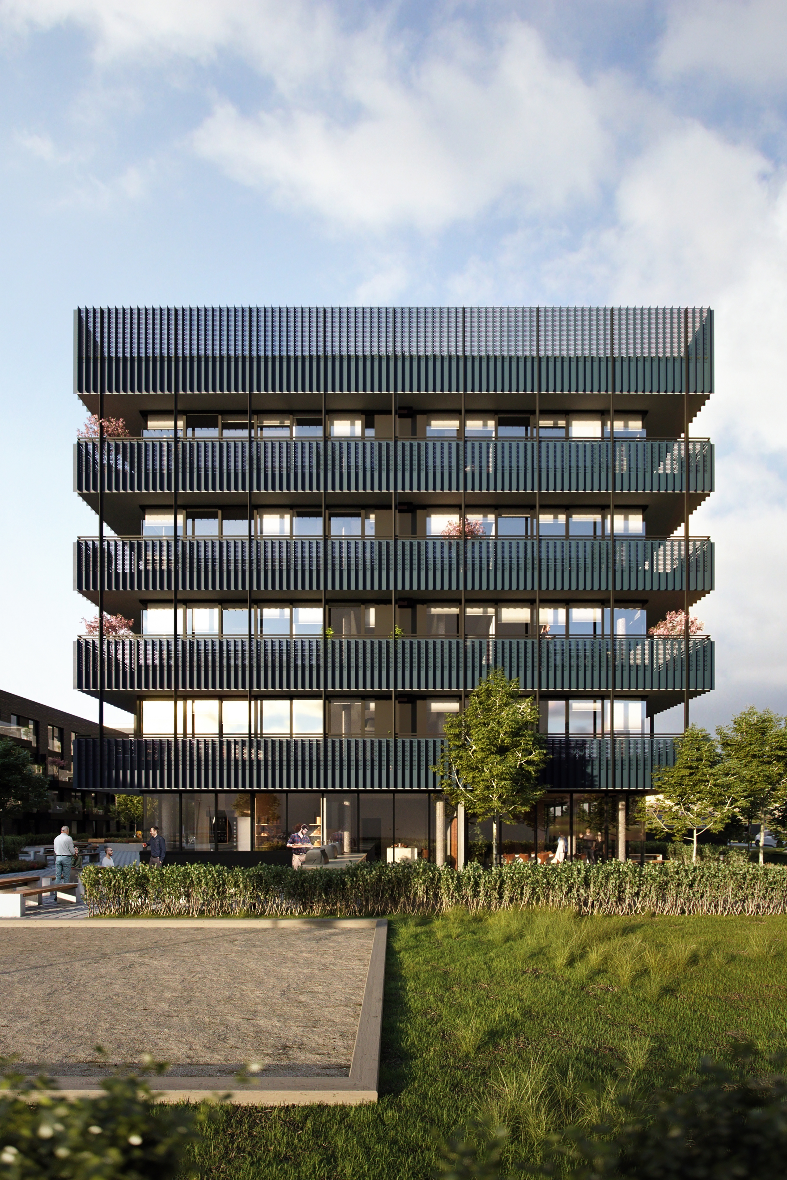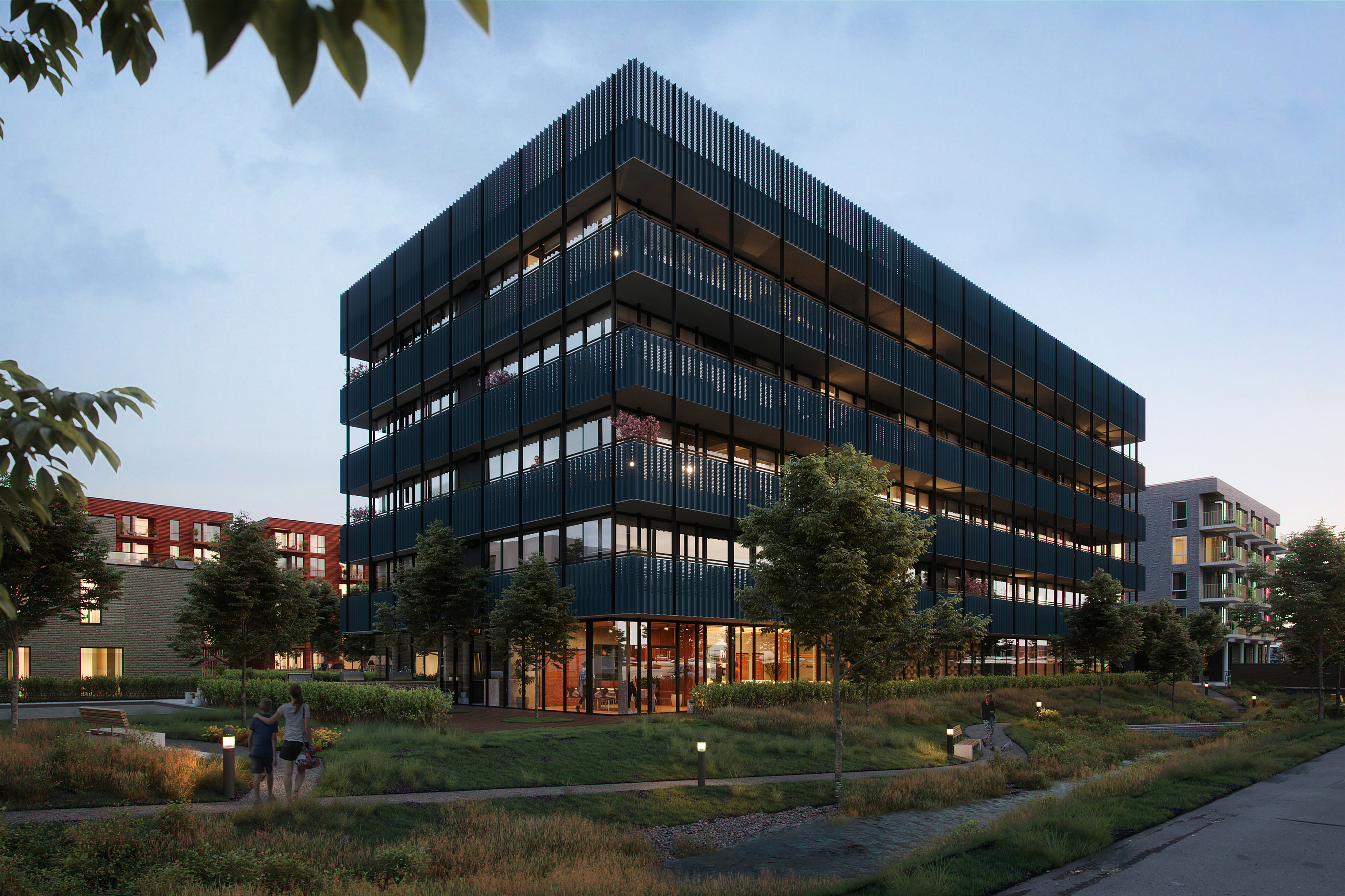 Alle illustrasjoner er utarbeidet basert på tegninger av fremtidige bygg. Illustrerte fasader vil kunne avvike fra ferdige bygg. Elementer og materialer i illustrasjonene kan avvike fra standardleveranse. Øvrige bygg, beplantning, vegetasjon og fellesarealer er ikke endelig prosjektert.