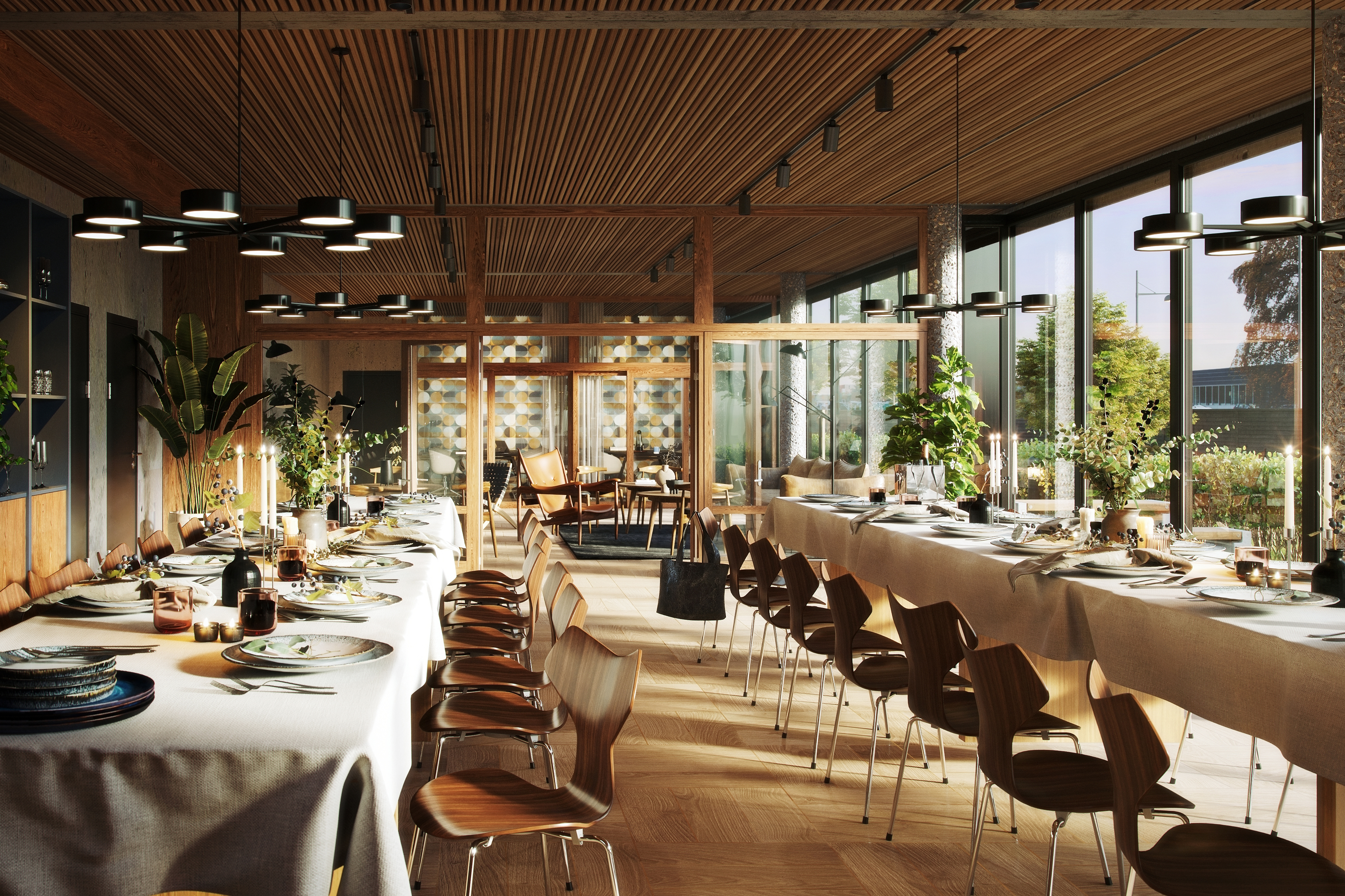 Naboeiendommer vises i enkelte illustrasjoner. Dette er for å vise prosjektets beliggenhet i forhold til eksisterende bygninger. Avvik kan forekomme.