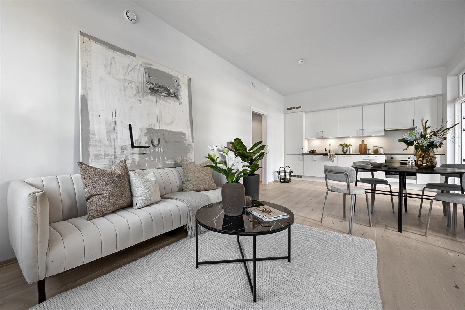 - Delikat og moderne innredning med en-stavs lys eikeparkett