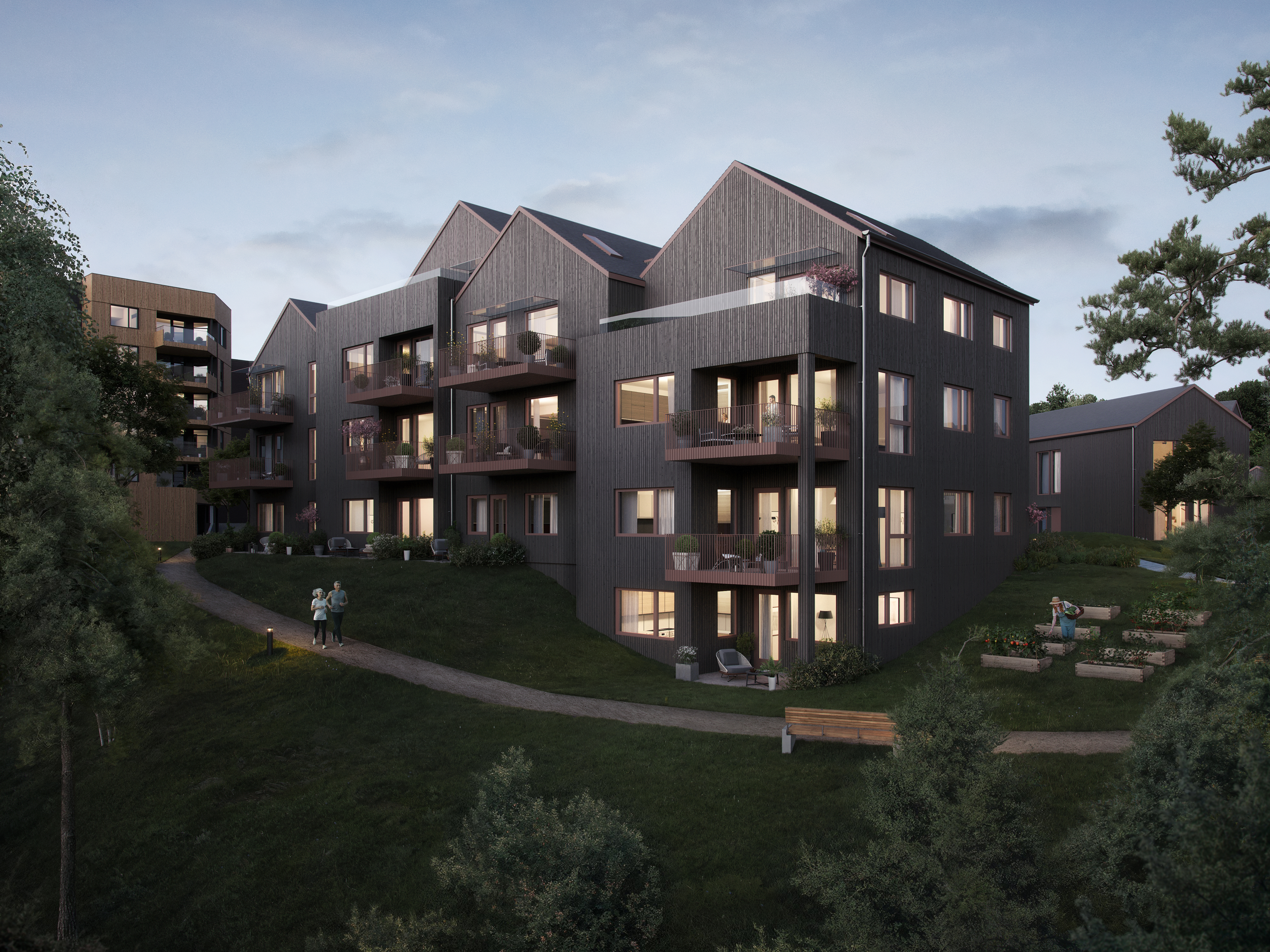 Hos oss får du mer enn bare en bolig – du får muligheten til å forme ditt eget fellesskap. Få tilgang til flotte fellesarealer for alt fra bursdager til fotballkvelder. Ute venter parsellhager for grønne fingre og en stemningsfull bålplass for lange, hyggelige kvelder.