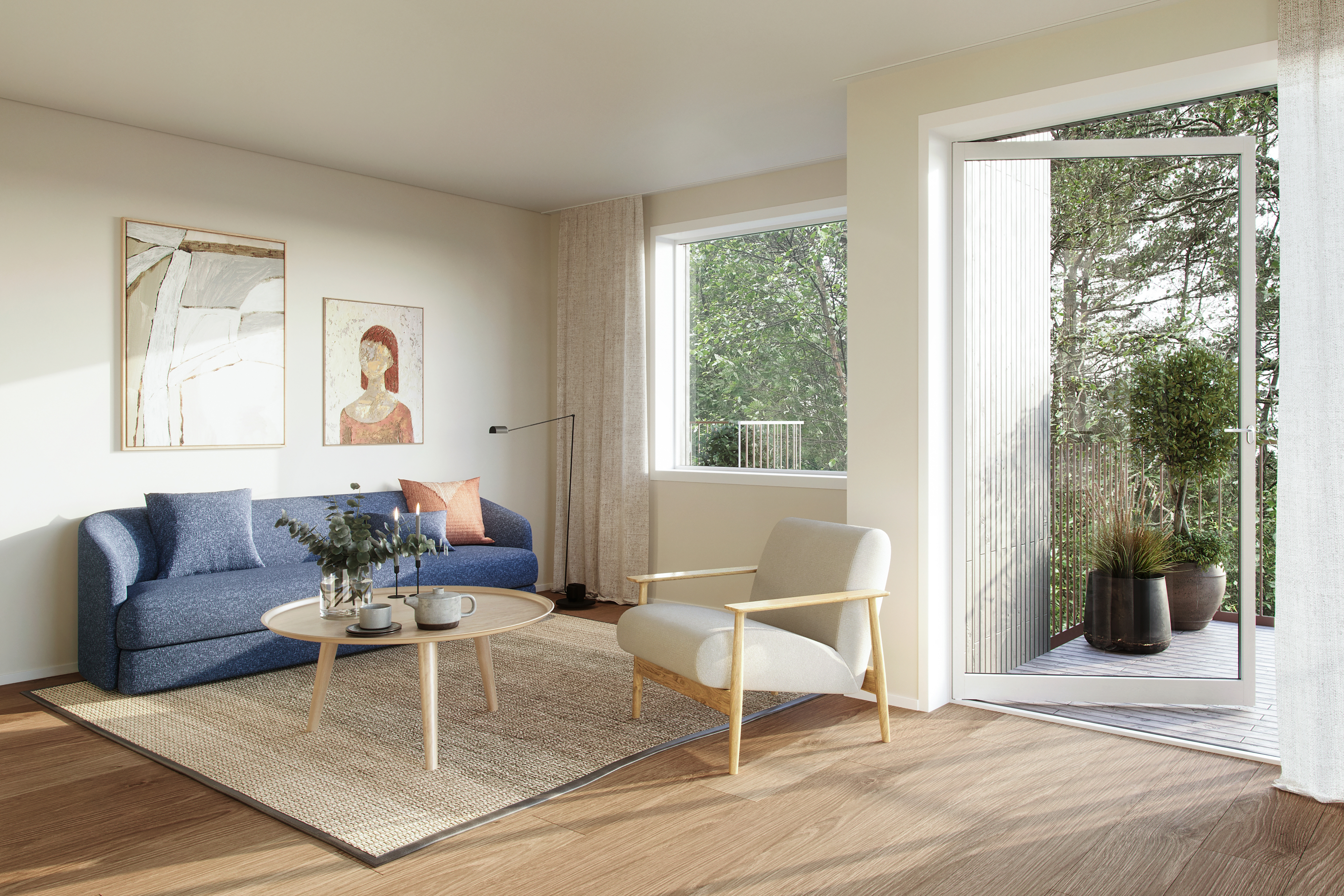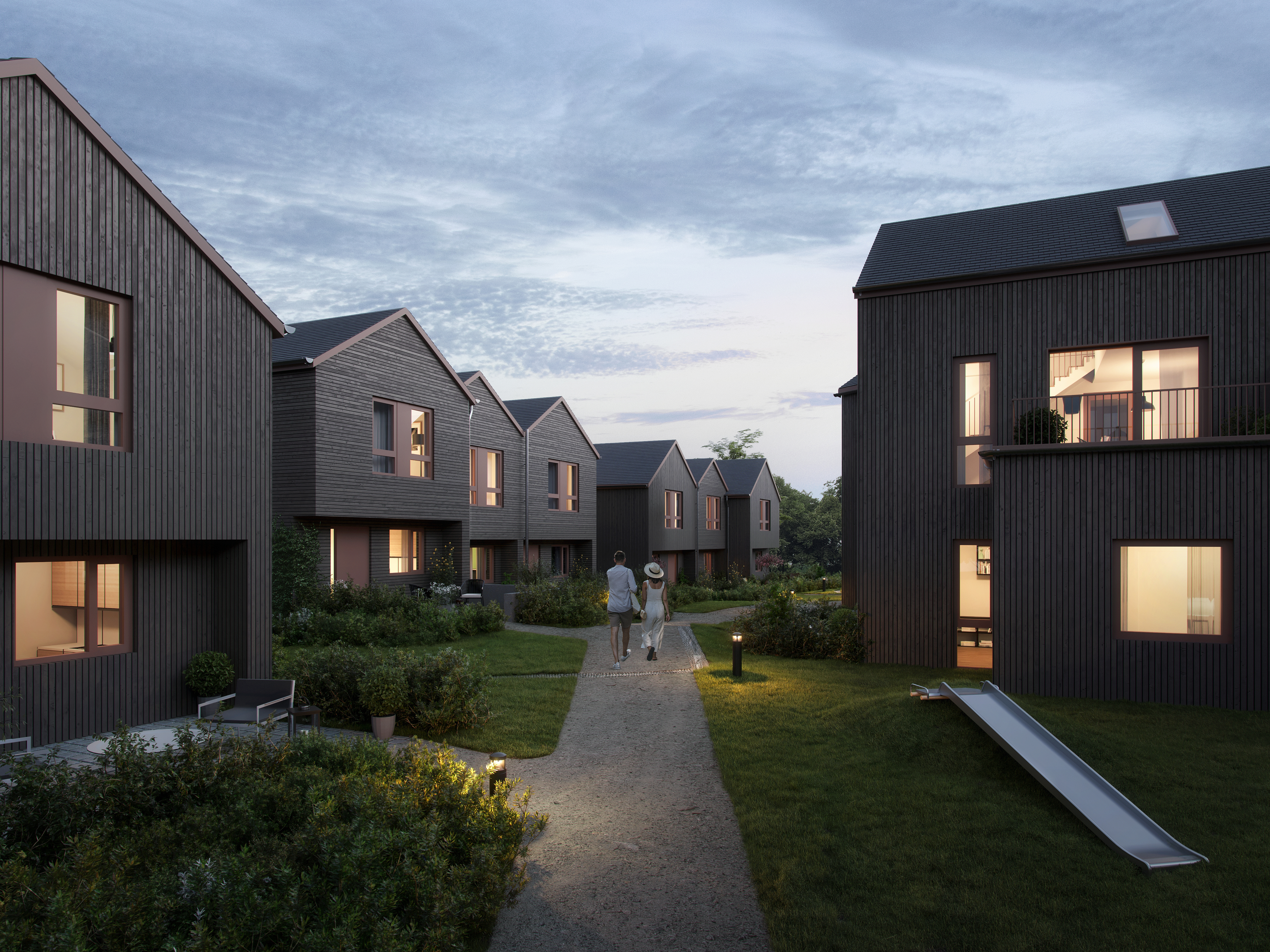 Her bygger vi 12 rekkehus og 46 leiligheter med balkong eller terrasse – alle med moderne planløsninger og gode lysforhold.