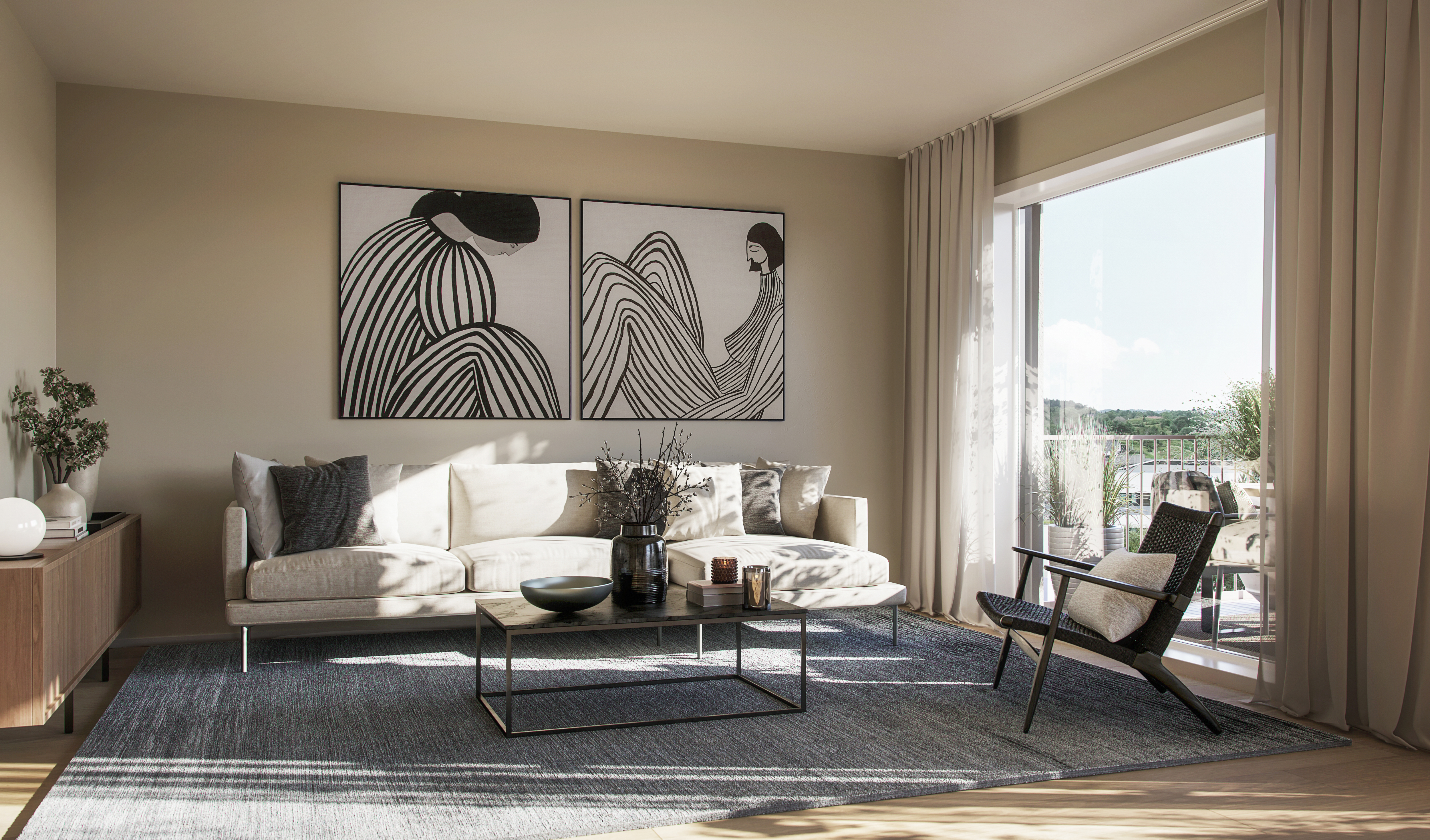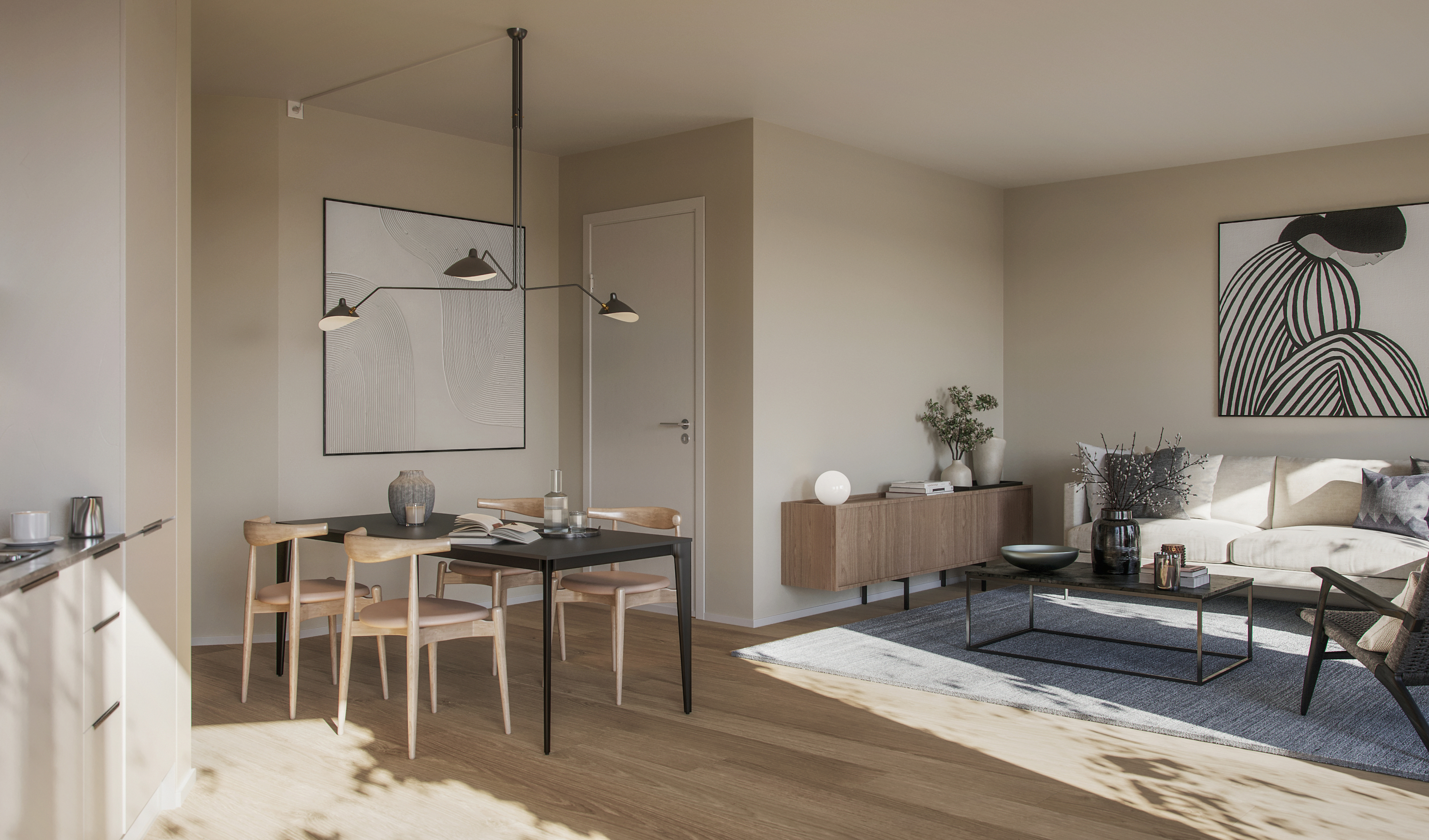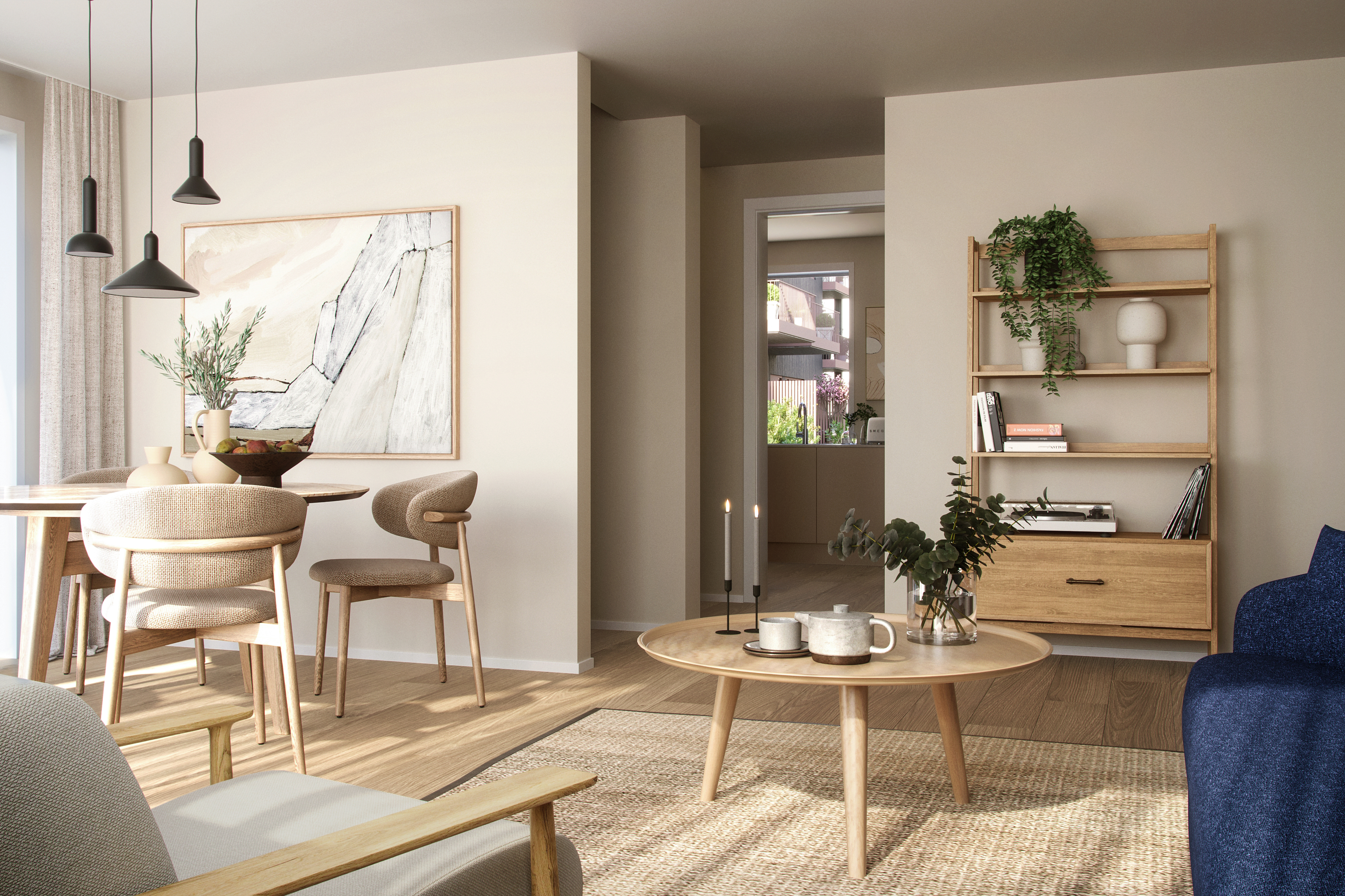 Alle illustrasjoner er utarbeidet basert på tegninger av fremtidige bygg. Illustrerte fasader vil kunne avvike fra ferdige bygg. Elementer og materialer i illustrasjonene kan avvike fra standardleveranse. Øvrige bygg, beplantning, vegetasjon og fellesarealer er ikke endelig prosjektert.