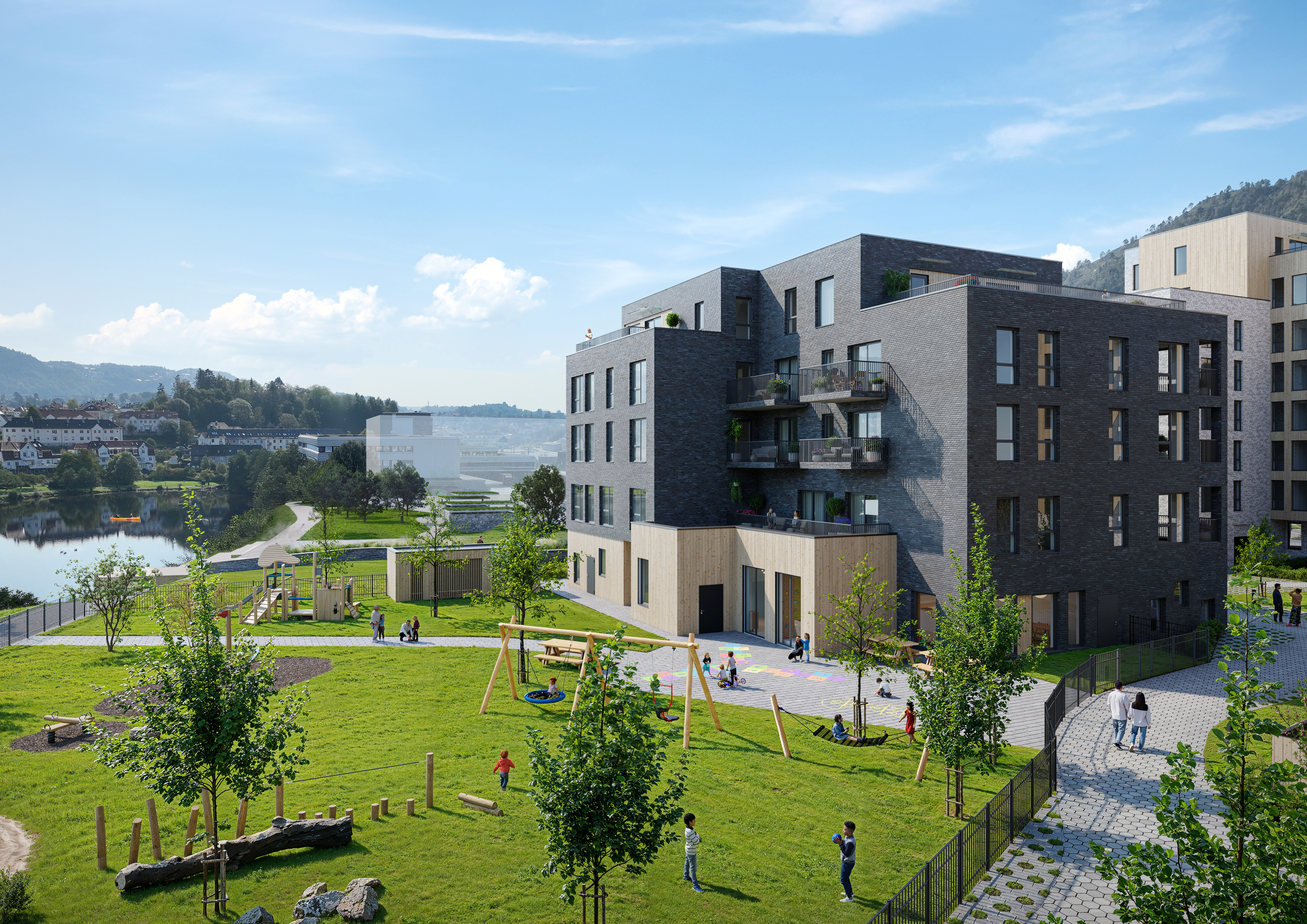 Boligene vender mot den nye parken og idylliske Solheimsvatnet, som blir din nærmeste nabo. Nyt grønne omgivelser, vannspeil og rekreasjon – rett utenfor døren, samtidig som du har bylivet like ved.