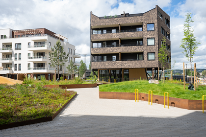 Gårdskvartalet, som ligger som nærmeste nabolag til Mathildetunet og er ferdigstilt, og her er det mulig å kjøpe innflyttingsklare boliger og få med alle nyboligfordelene. Innflyttingsdato avtales med den enkele kjøper. Les mer om innflyttingsklare boliger i Gårdskvartalet her.