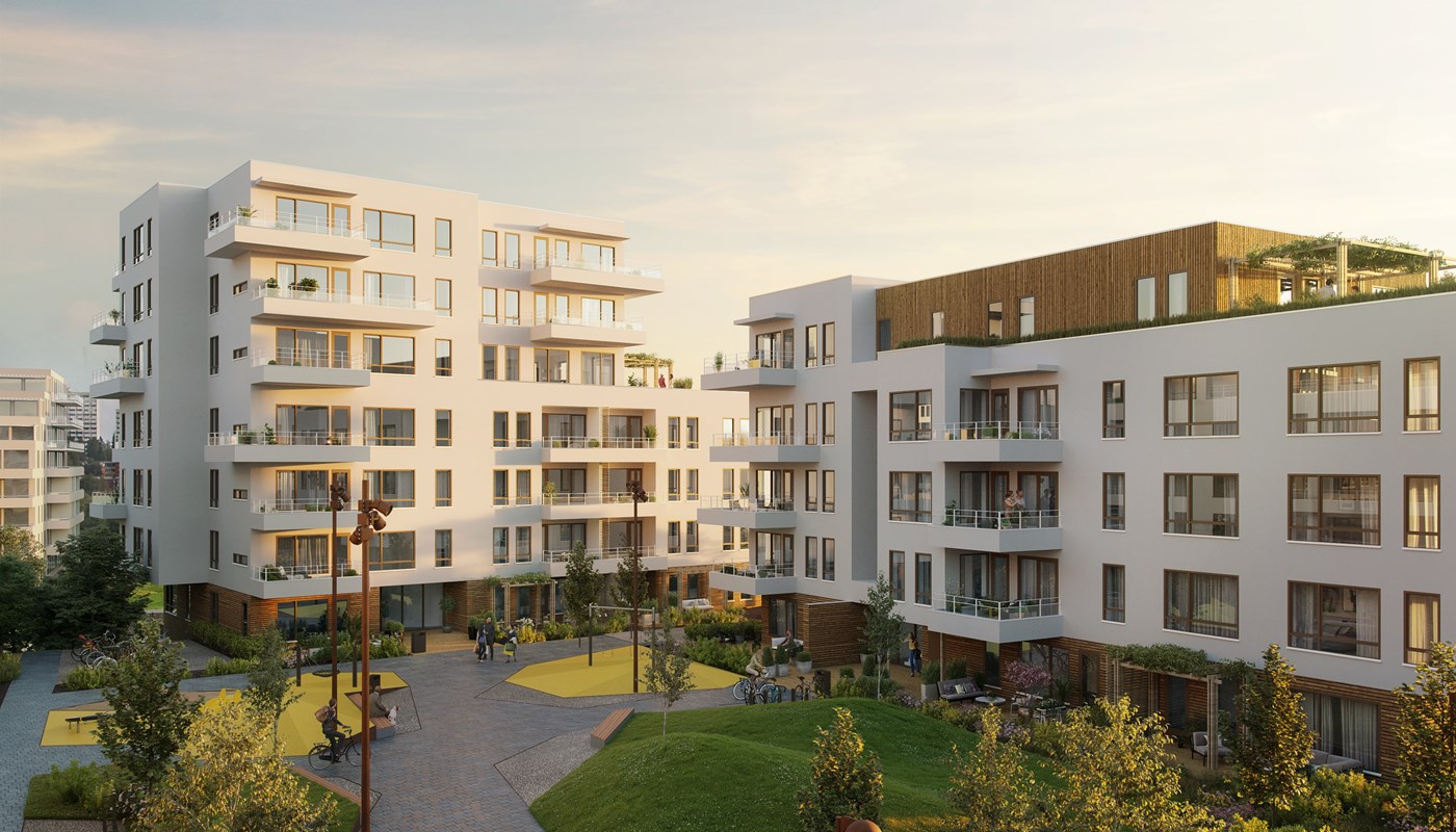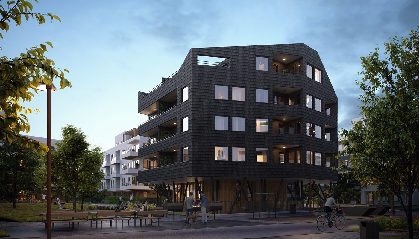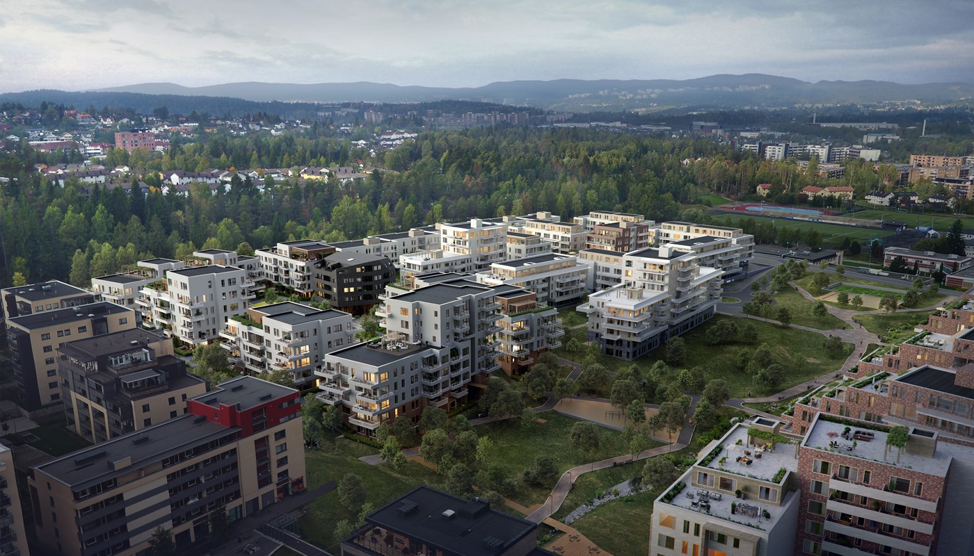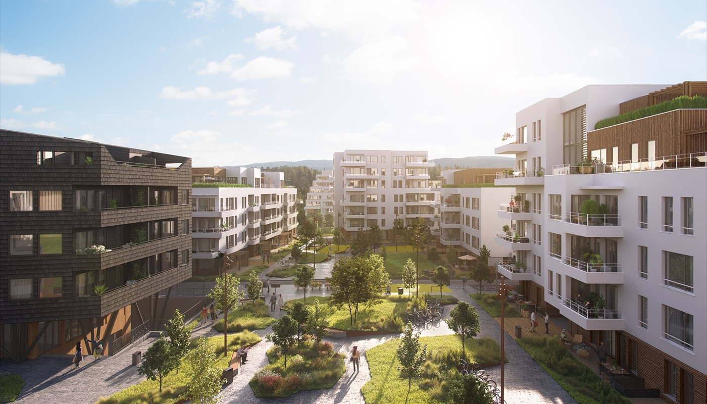 Alle illustrasjoner er utarbeidet basert på tegninger av fremtidige bygg. Illustrerte fasader vil kunne avvike fra ferdige bygg. Elementer og materialer i illustrasjonene kan avvike fra standardleveranse. Øvrige bygg, beplantning, vegetasjon og fellesarealer er ikke endelig prosjektert.
